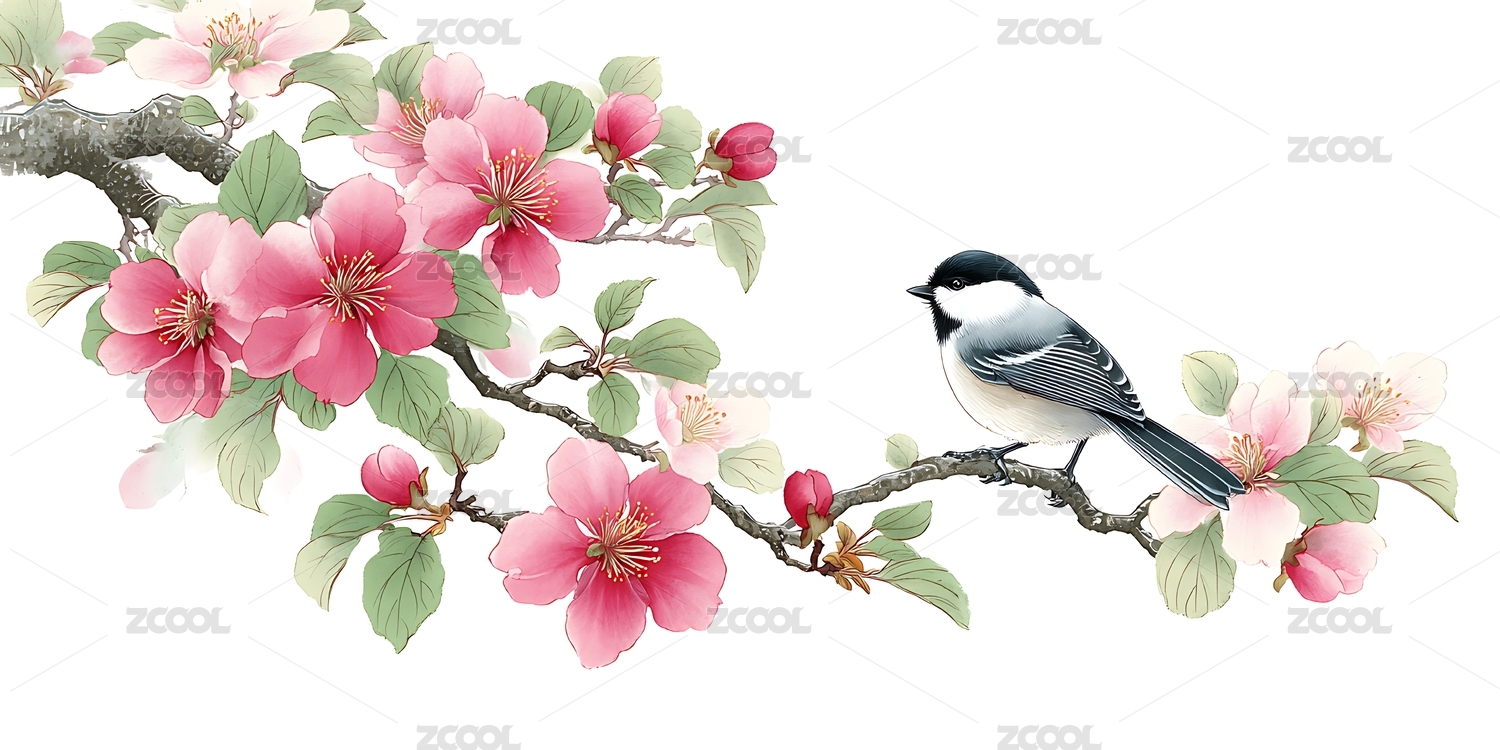 中国风,国潮,喜鹊,桃花,春天,七夕,浪漫,爱情,花朵,鸟
