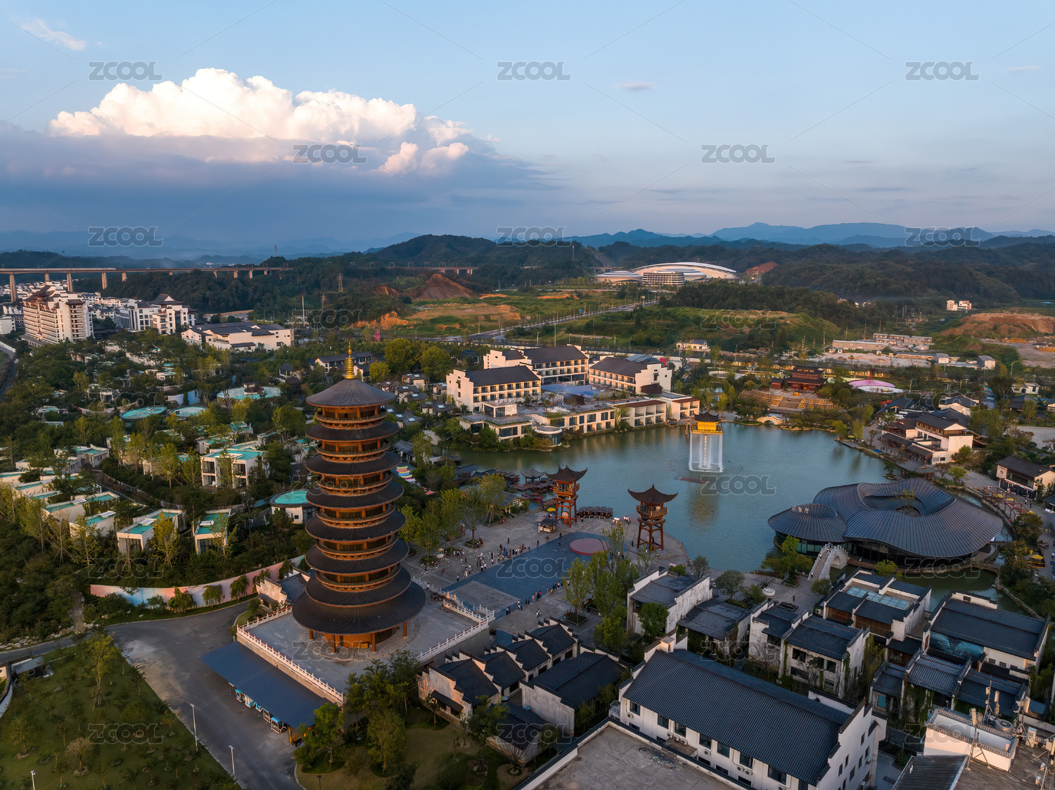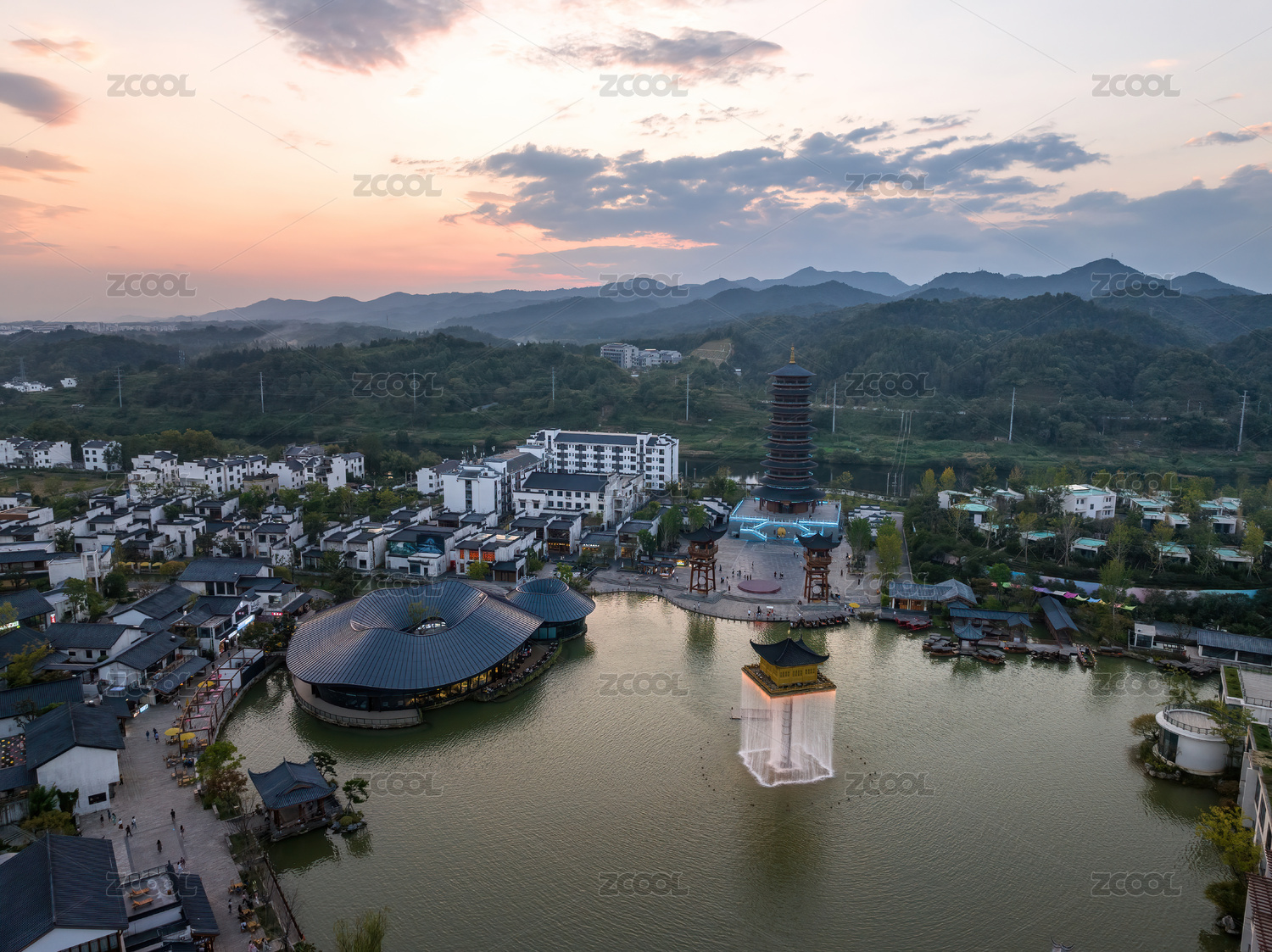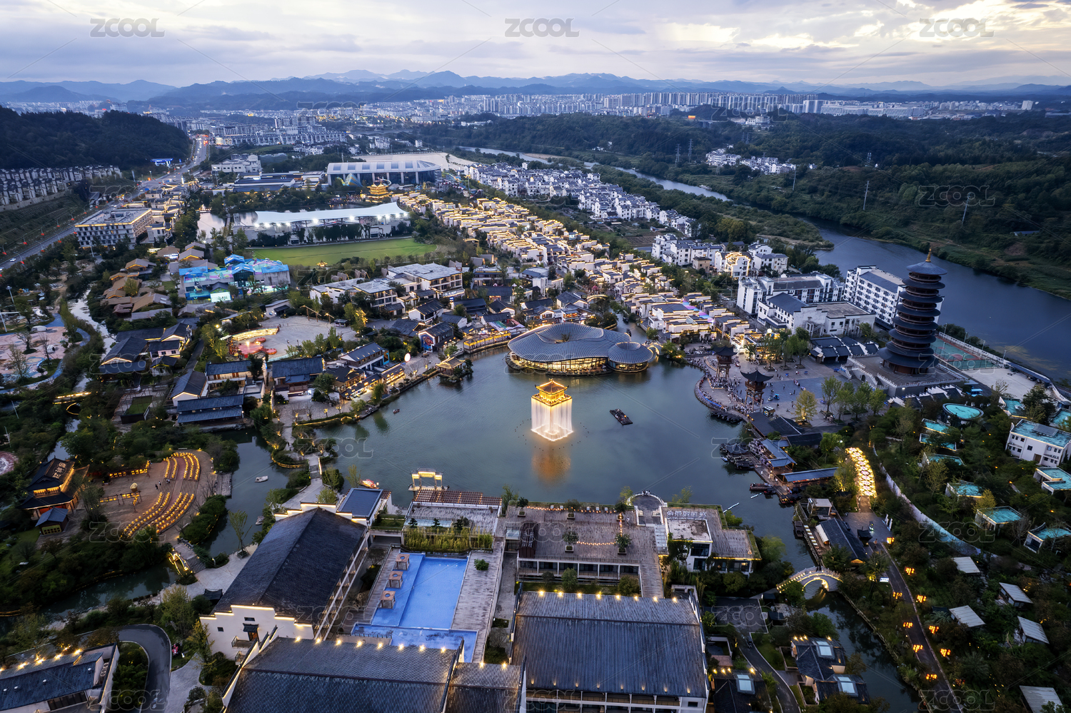 江西,上饶,景点,婺女洲,航拍,建筑群,古建筑,仿古,村落,夜景