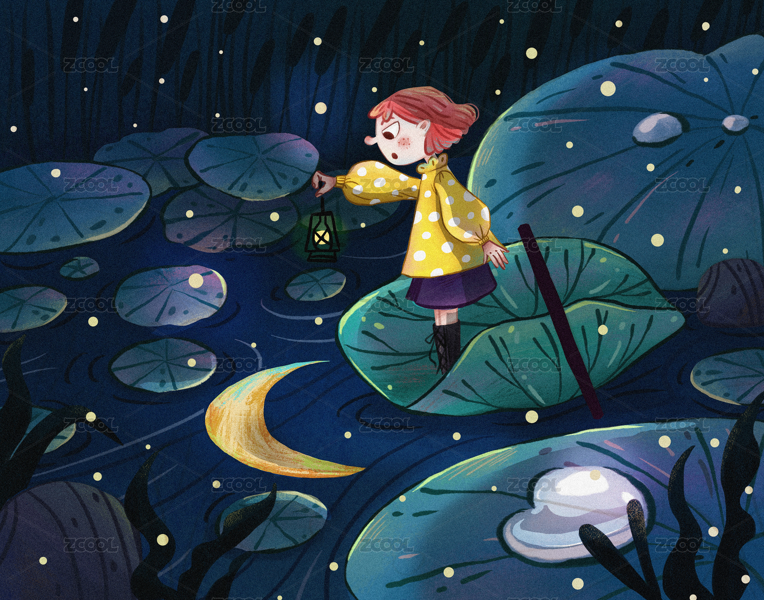 小精灵夜游荷塘看萤火虫