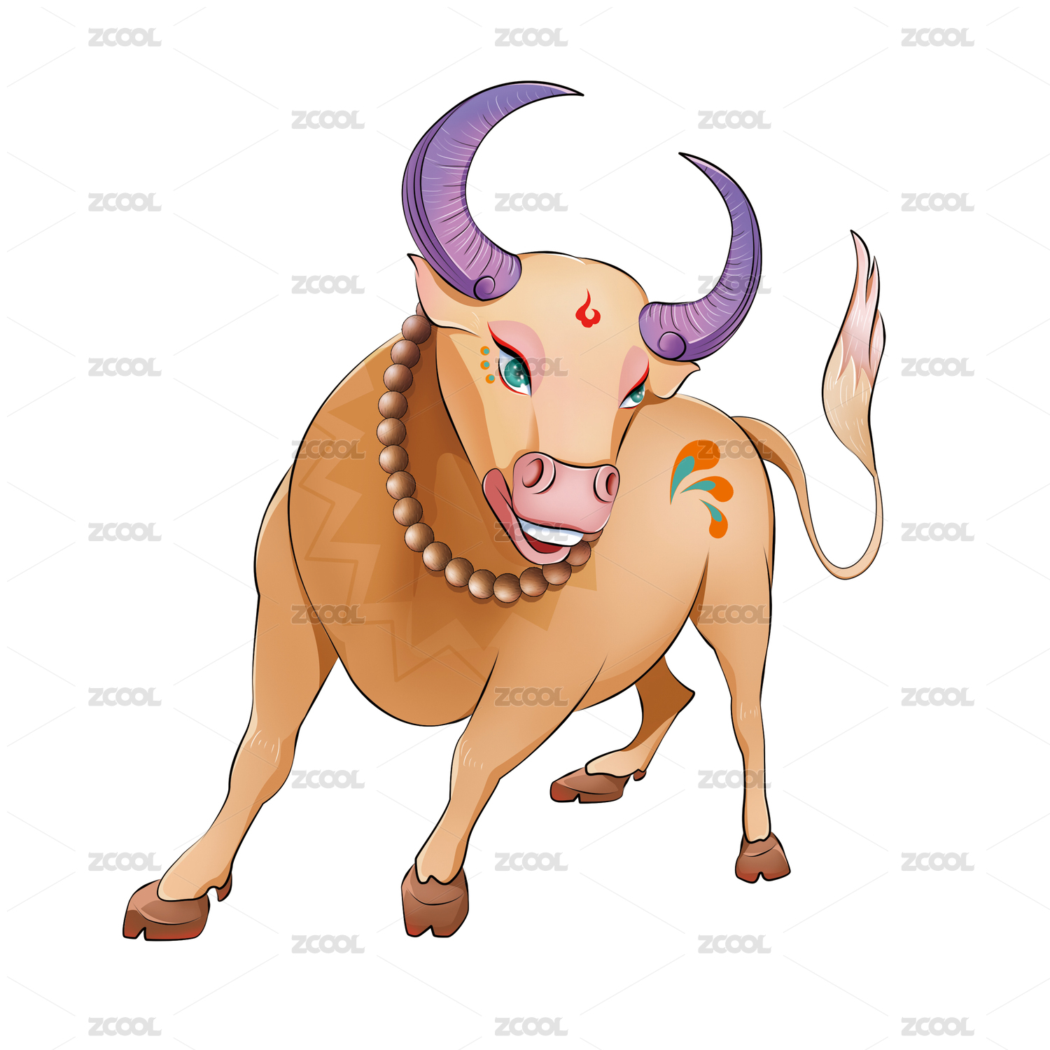 手绘卡通神牛插画素材