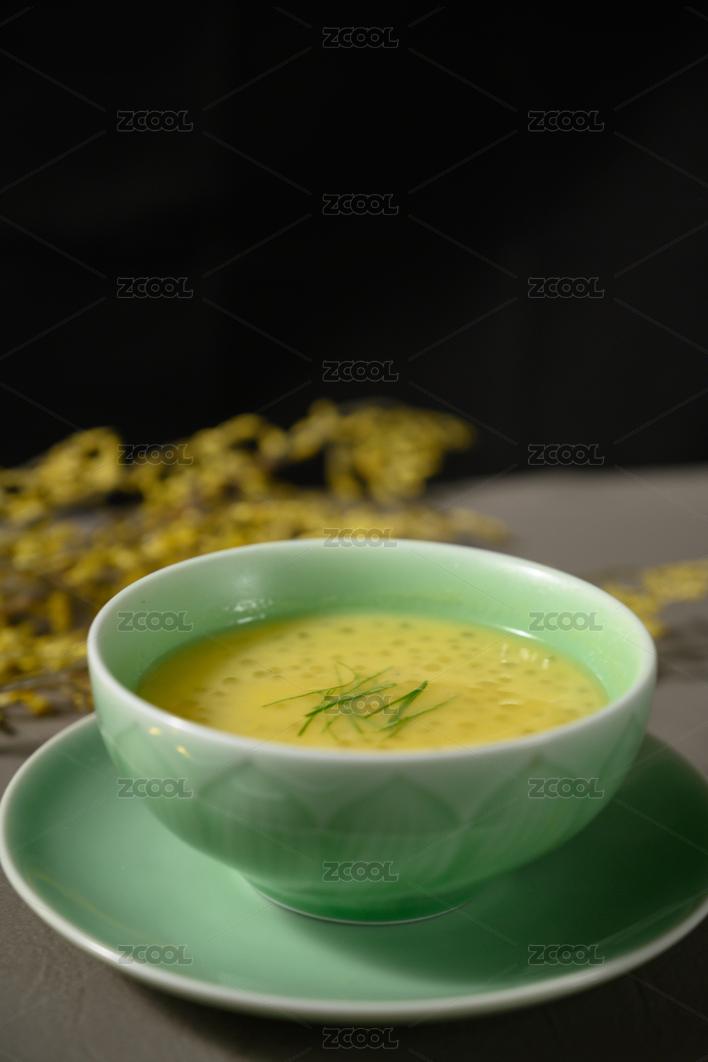 桌面上的碗里的美味可口的香菇鸡蛋汤