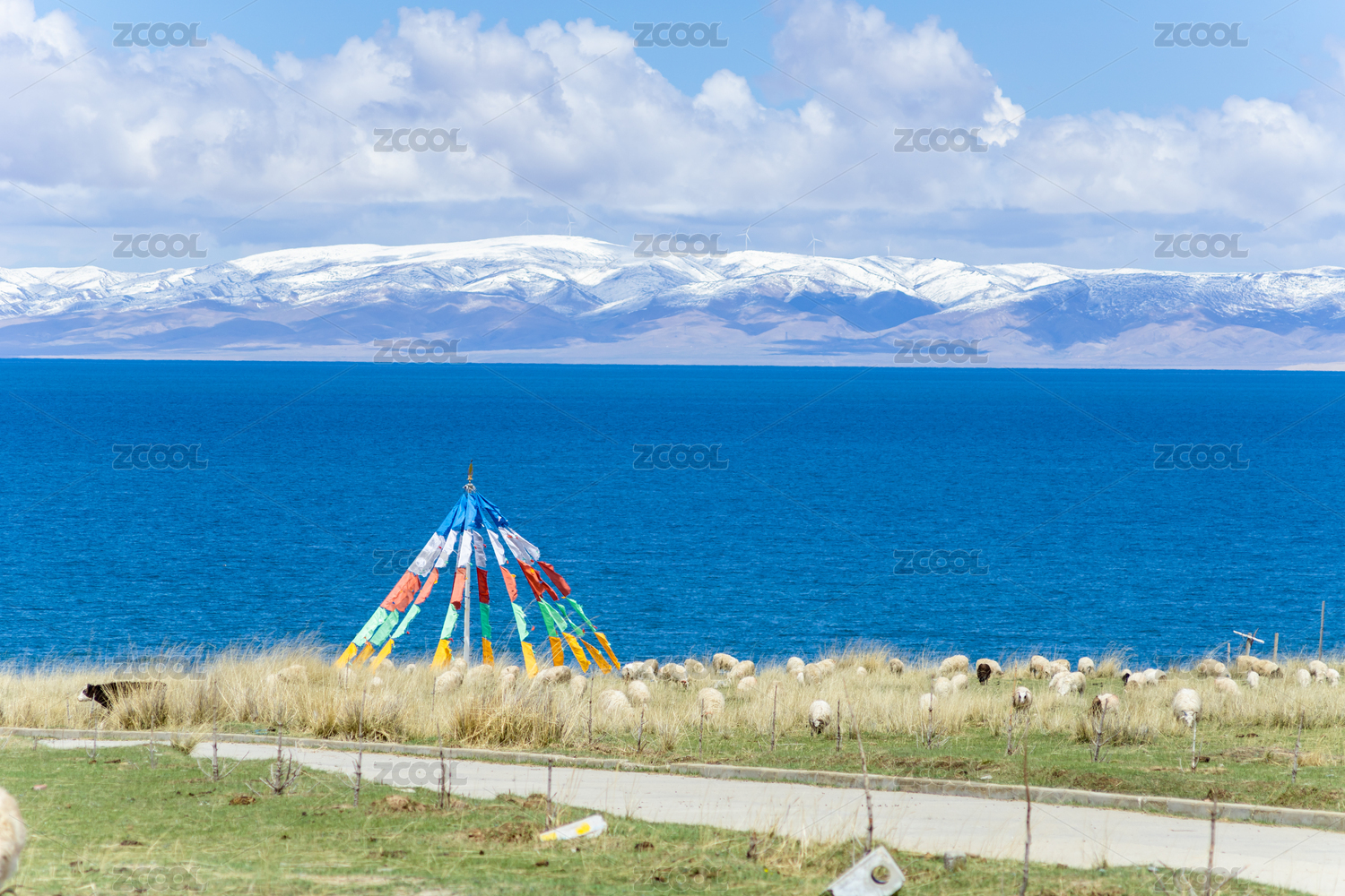 中国新疆博尔塔拉赛里木湖夏日晴天风景