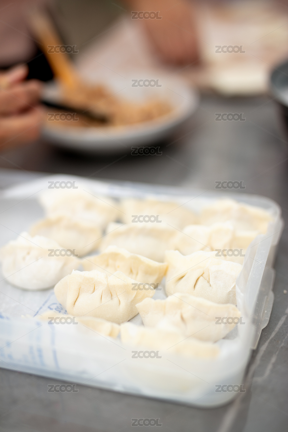 厨师包馄饨的特写