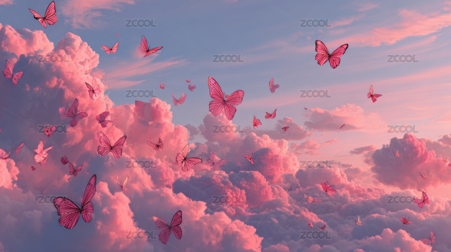 七彩祥云蝴蝶梦幻日落晚霞天空背景
