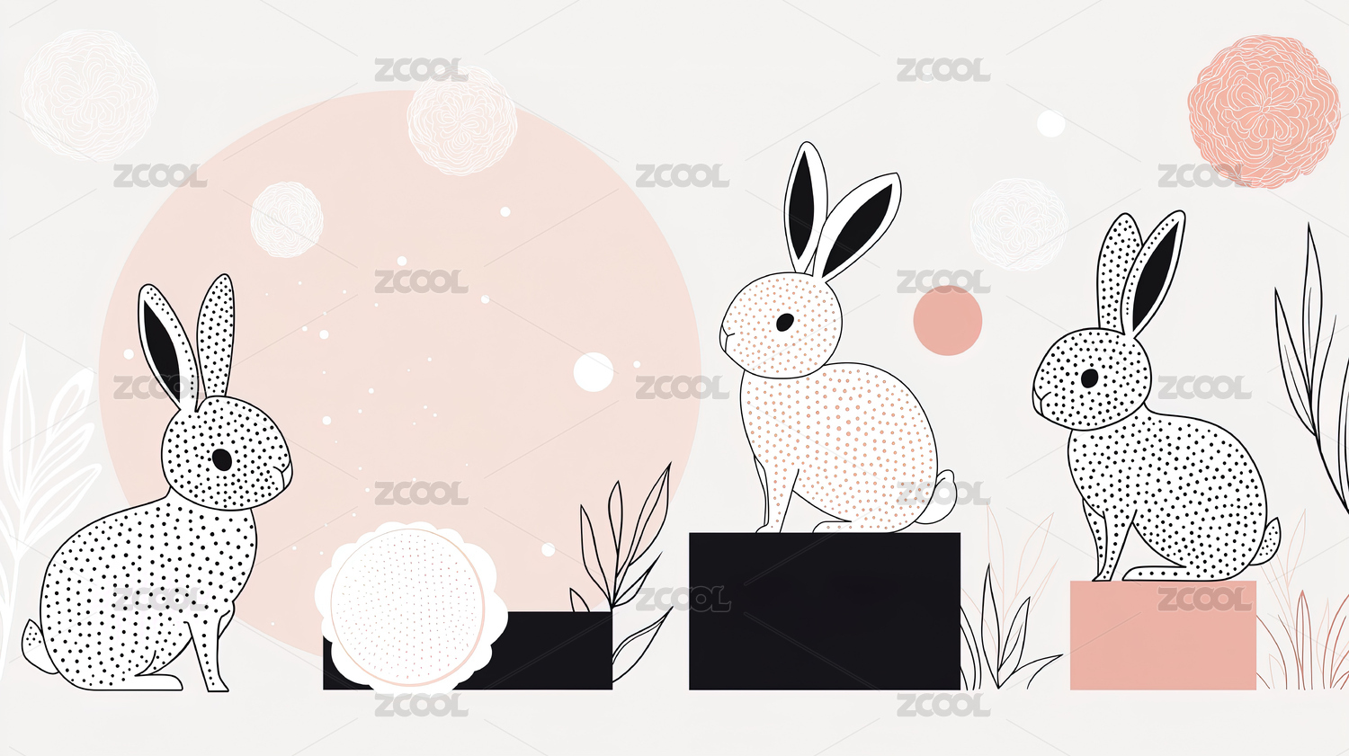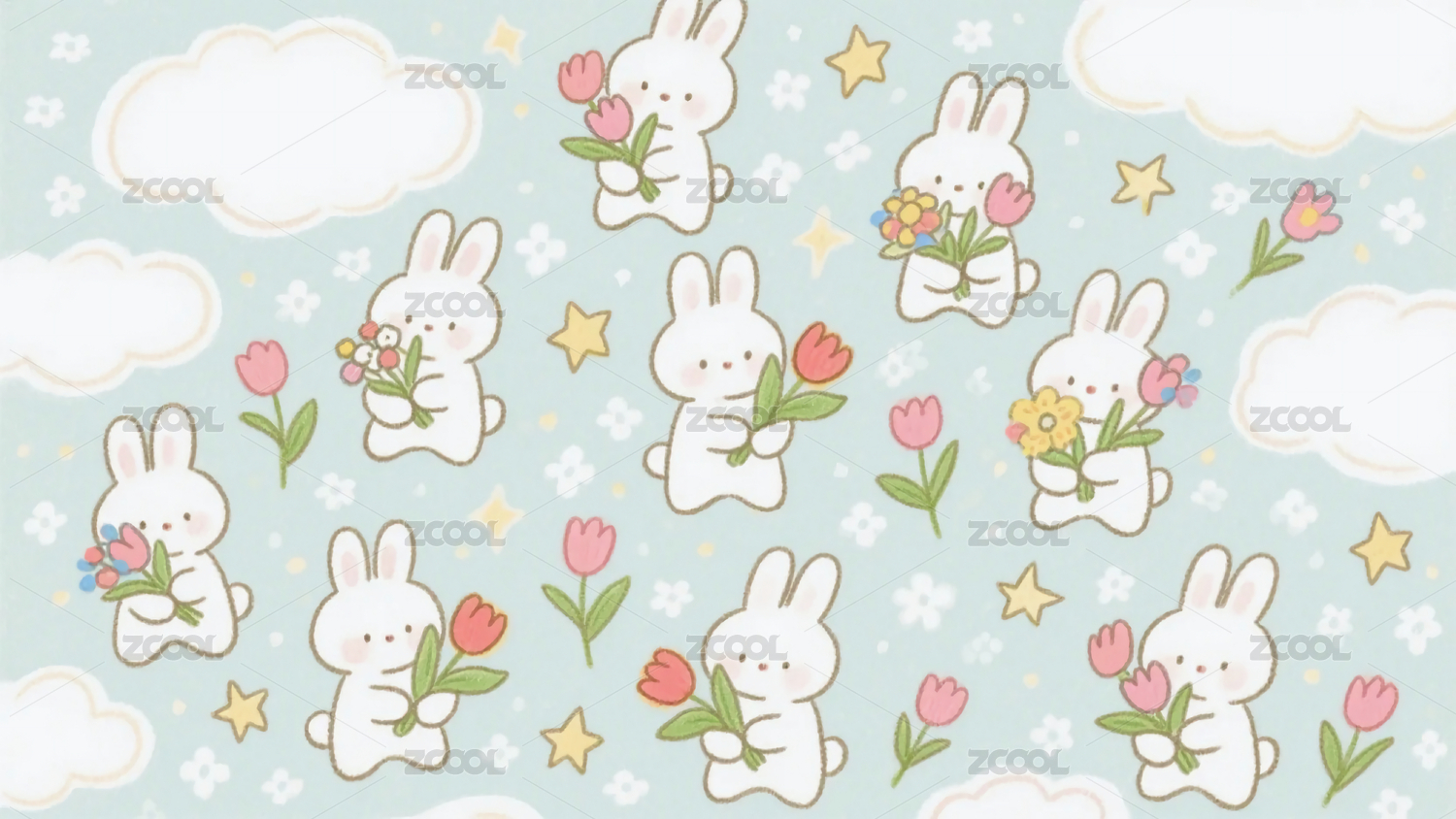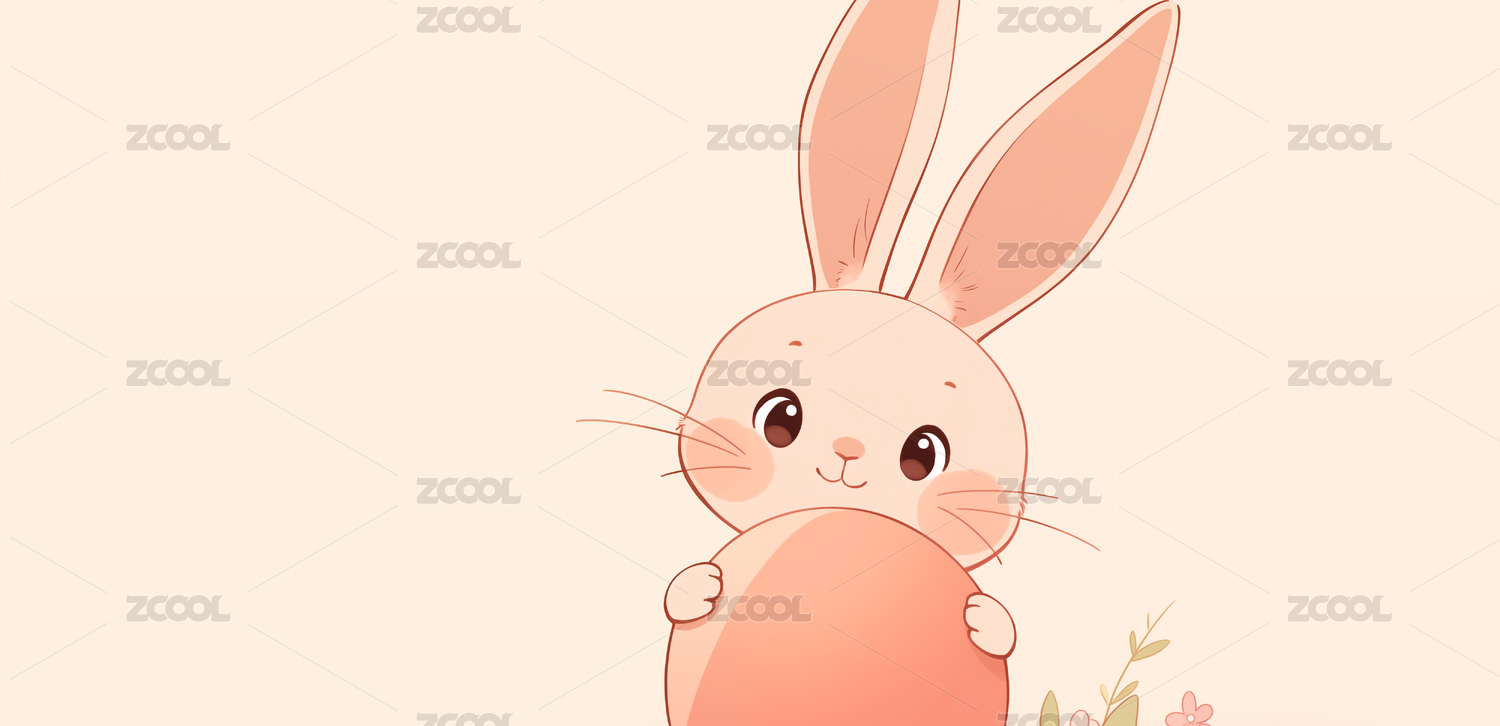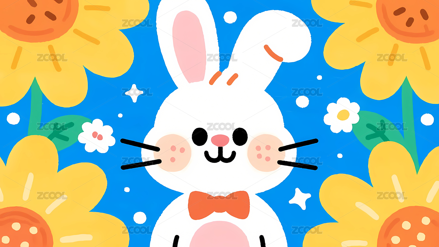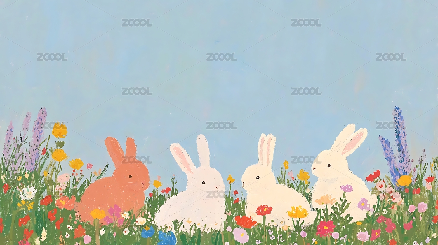 兔子彩色花卉插图装饰复活节快乐贺卡