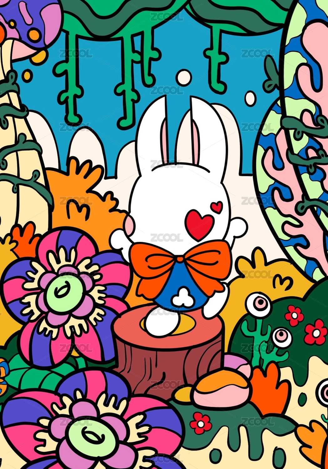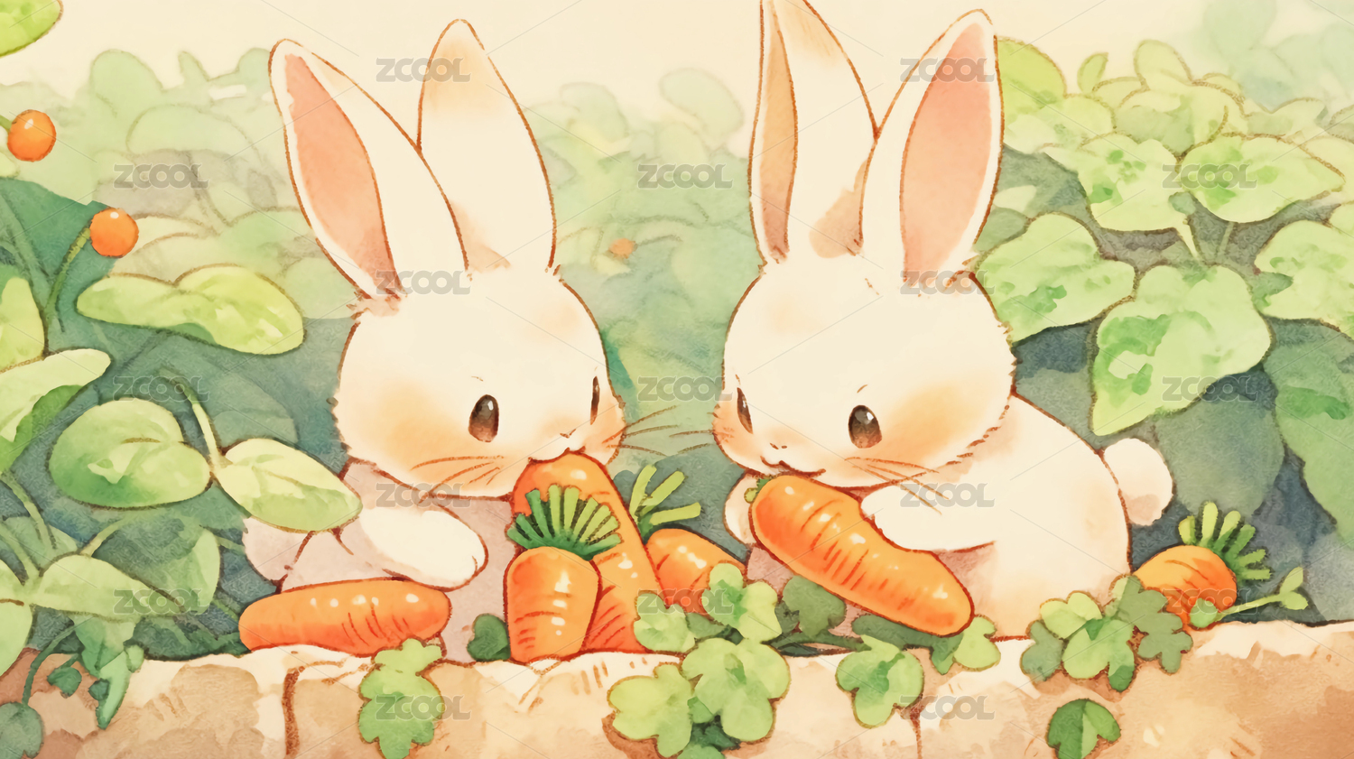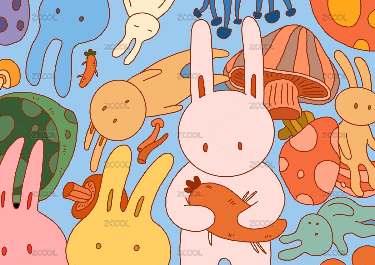 插画,兔子,兔年,萝卜,蘑菇,童年,童话,装饰,2023年,快乐