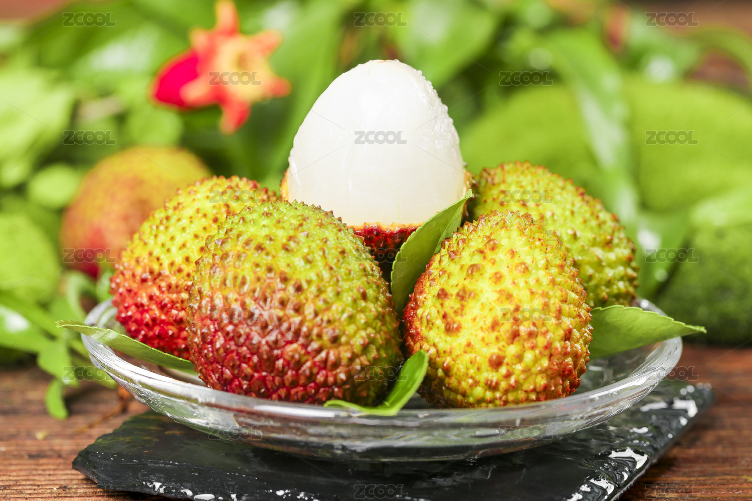 盘子里装着新鲜妃子笑和妃子笑果肉