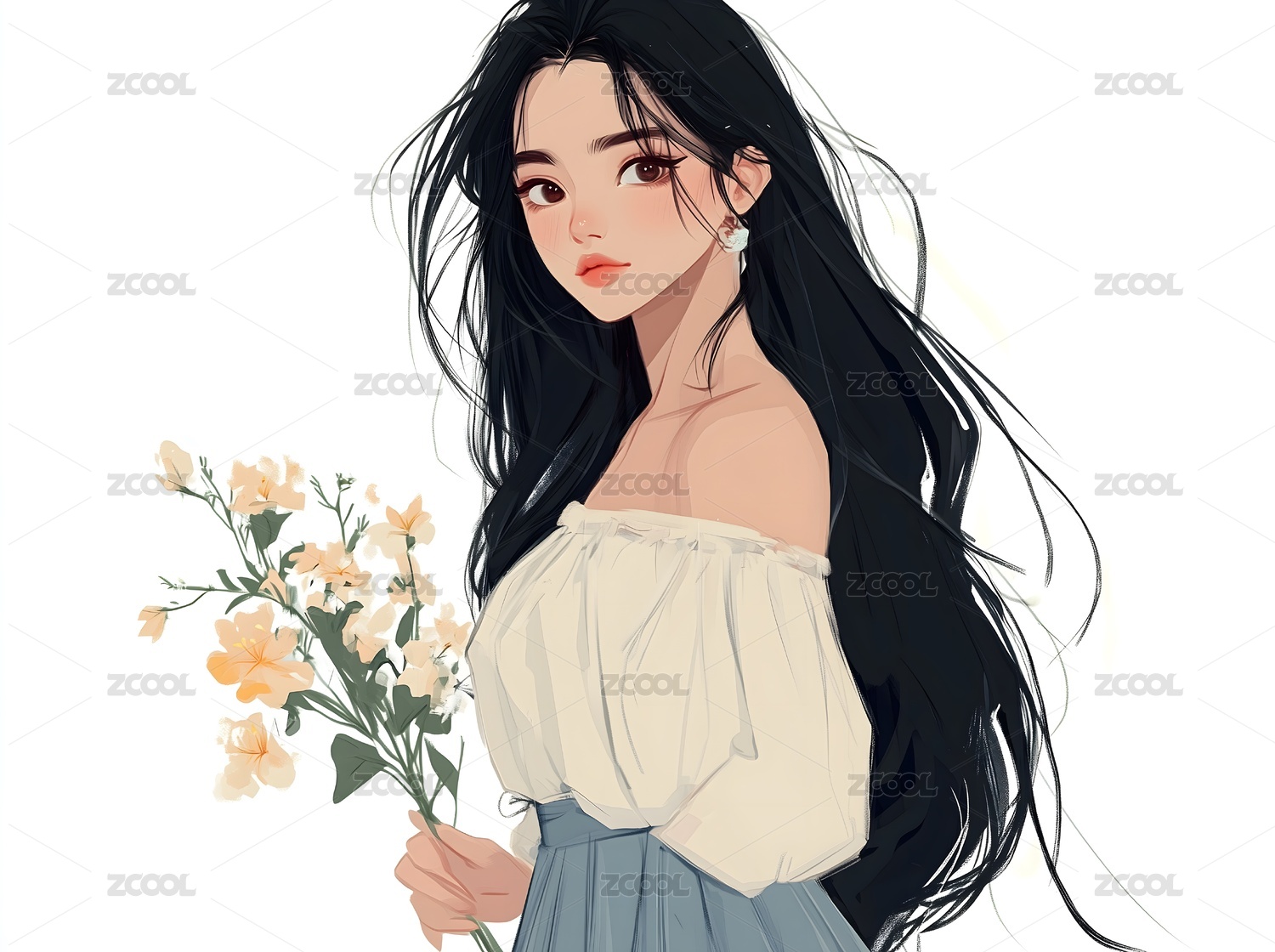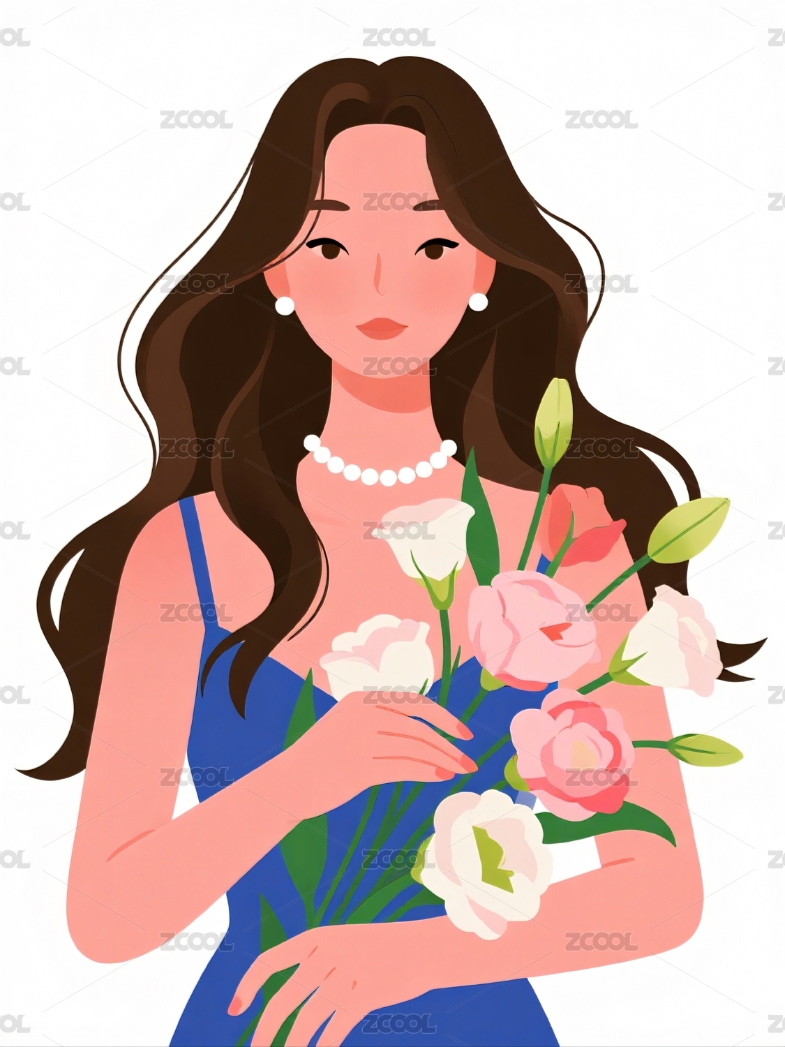 女人,插画,花,爱情,情人节,女性,七夕节,爱,爱心,鲜花