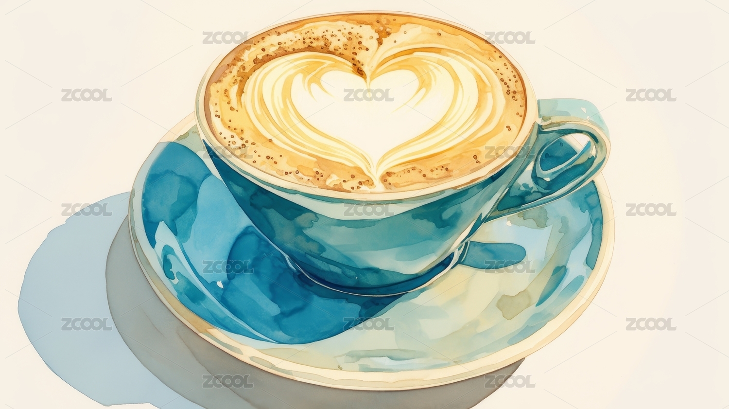 清新明亮一杯拉花浓稠牛奶咖啡饮料