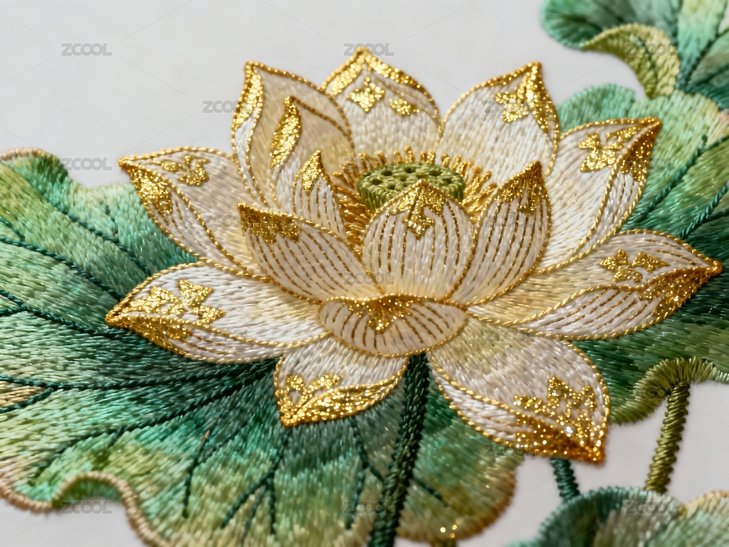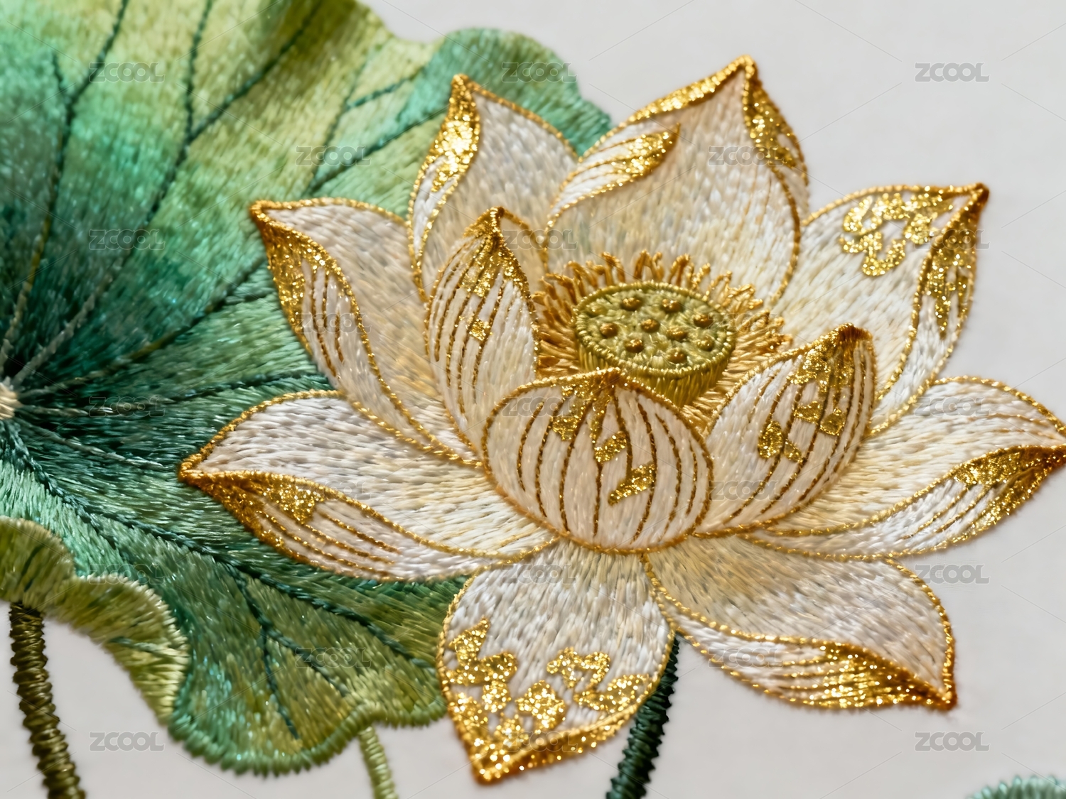 原创,手工,刺绣,化妆镜,莲花,荷花,复古,传统,珍珠,手作