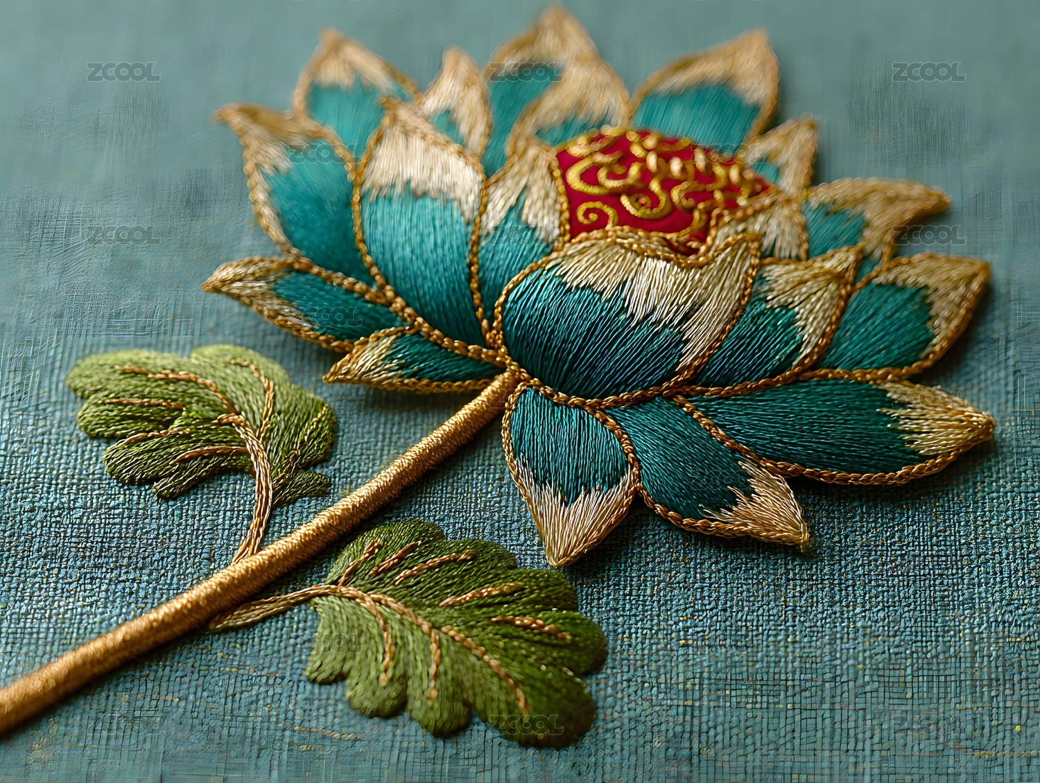 蓝莲花——原创手工刺绣中国风胸针项链挂饰