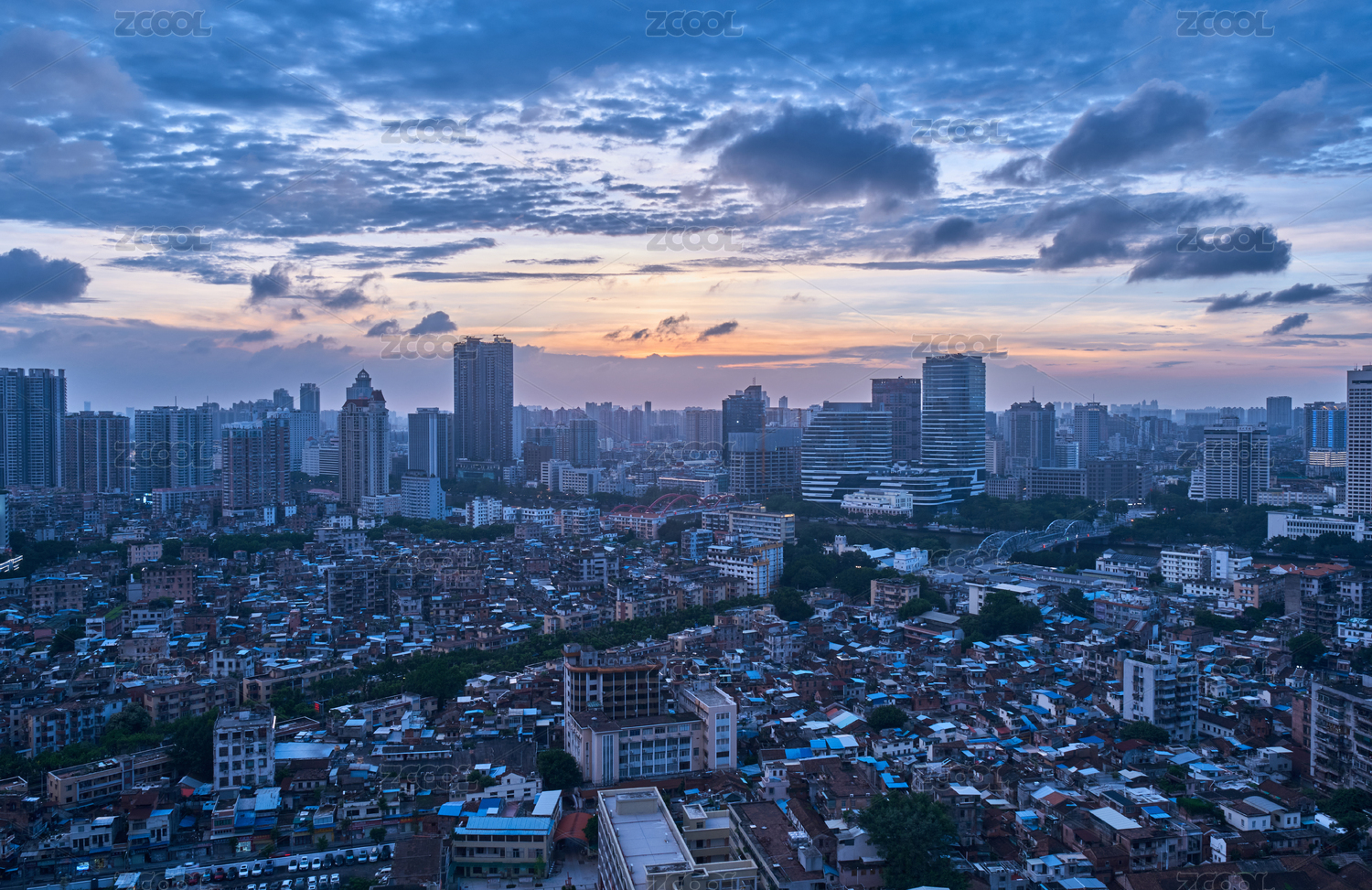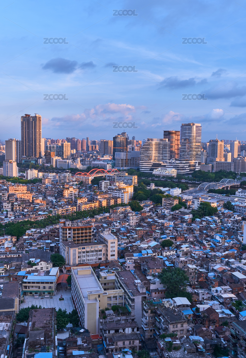 中国广州珠江岸城市高楼建筑夕阳晚霞