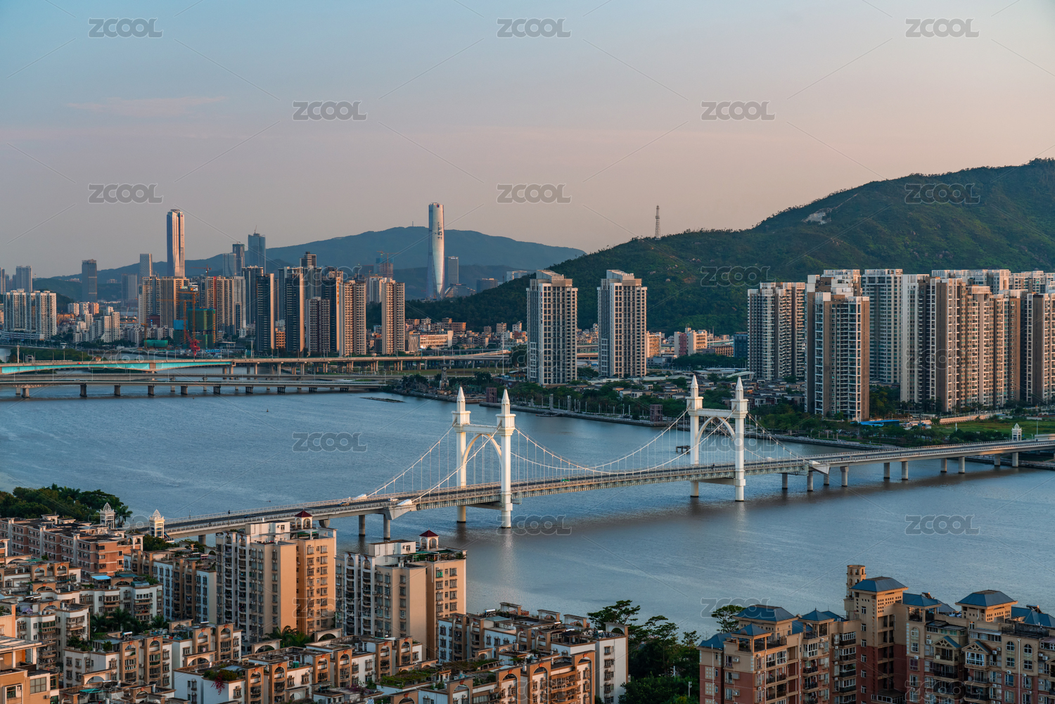 珠海白石桥城市风光晚霞