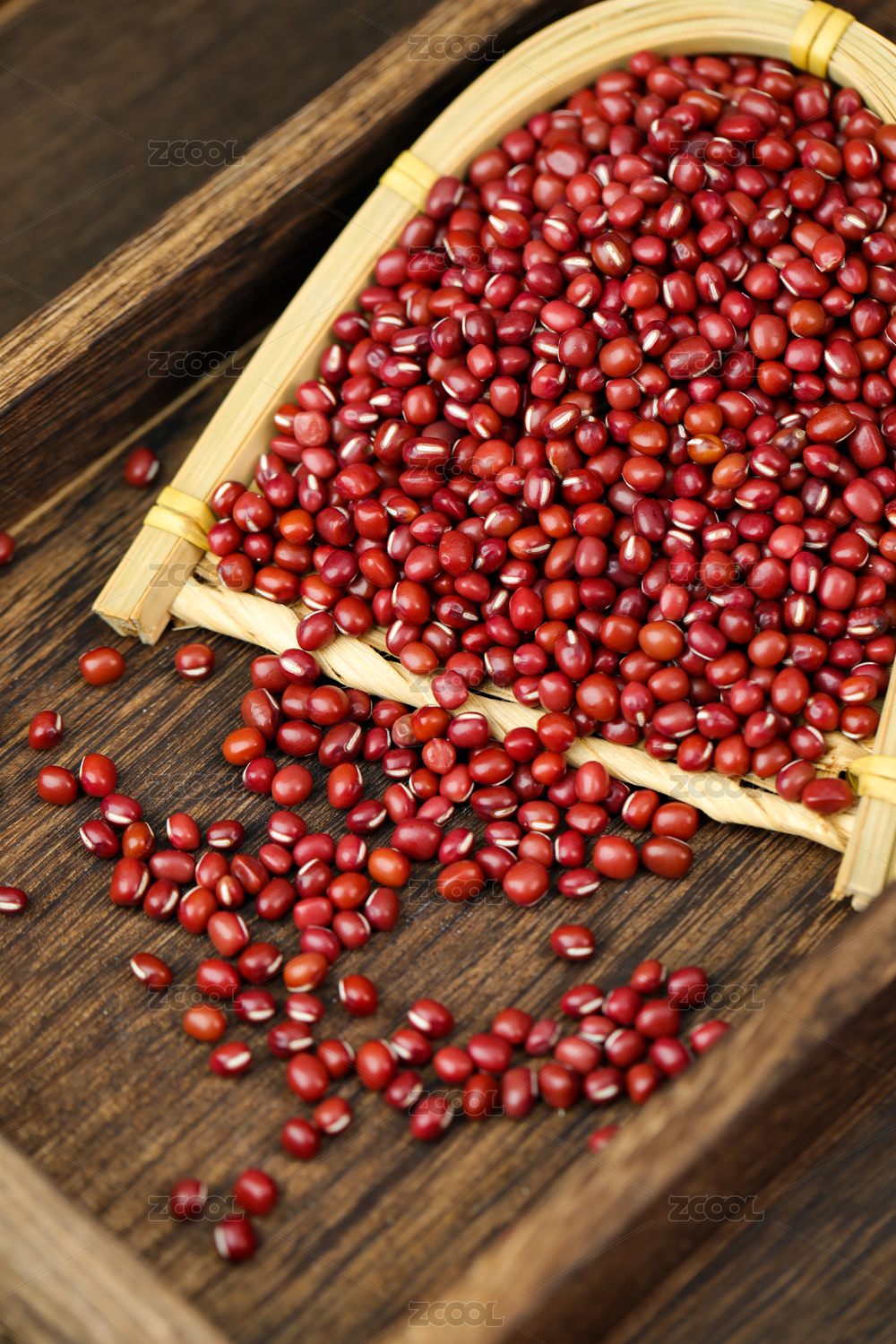 桌面盘子里装满红色赤豆红豆豆子食物果实