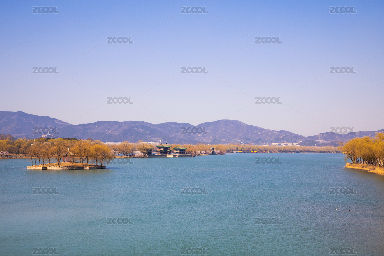 昆明湖,户外,远景,白昼,平视角,水,河岸,自然,岛,建筑物