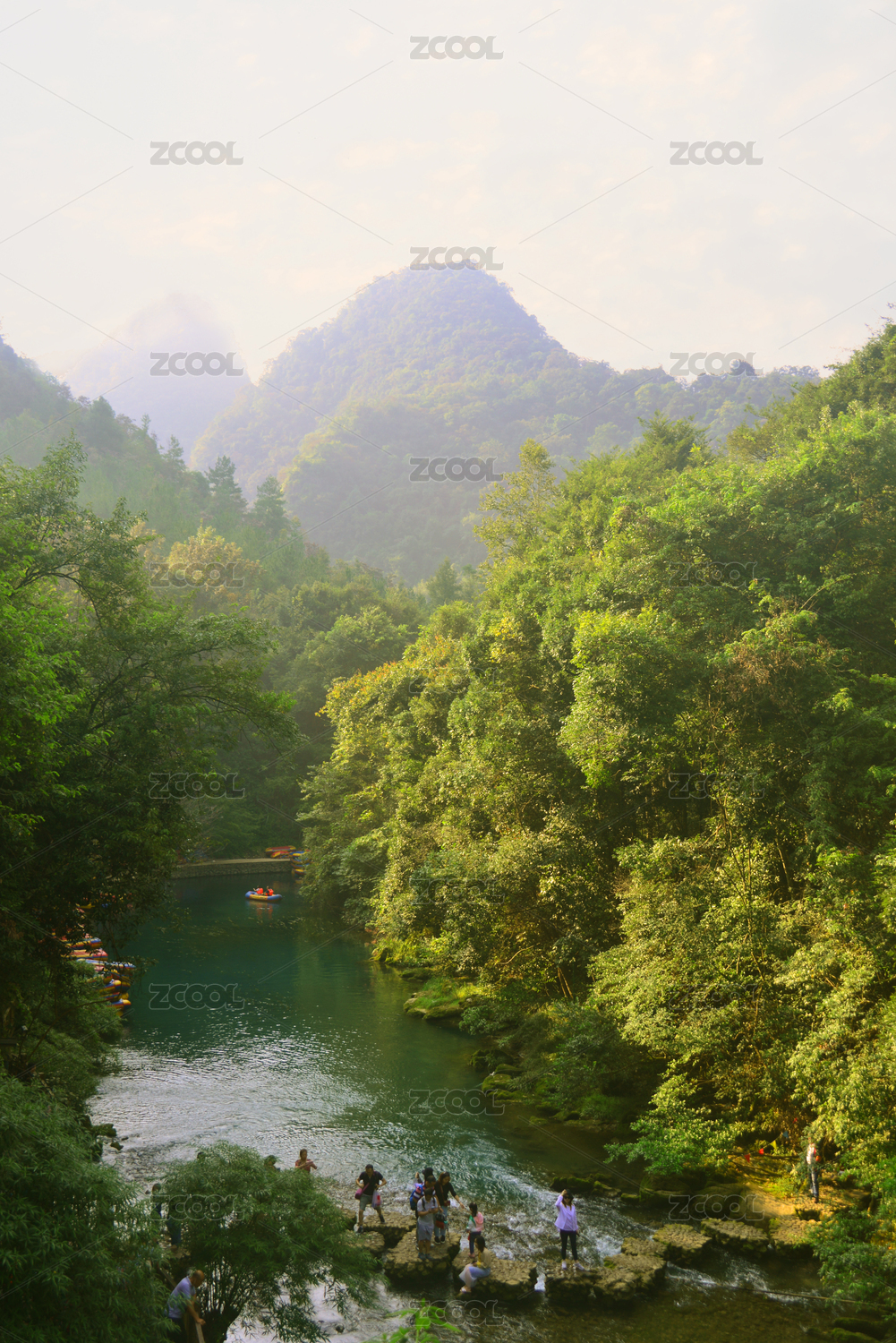 贵州荔波小七孔山谷河流 卧龙谷和卧龙河