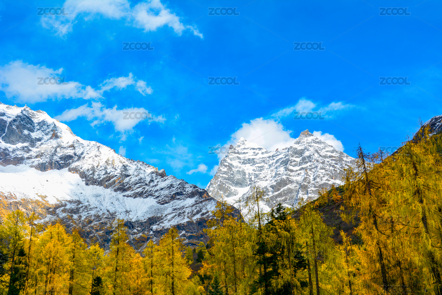 四川甘孜藏族自治州四姑娘山双桥沟秋季雪山彩林美景