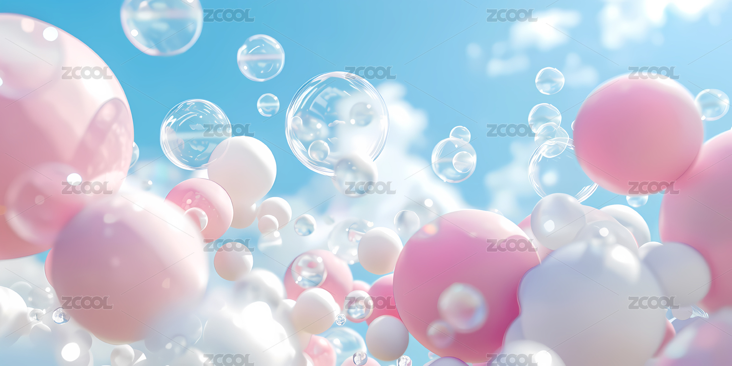 可爱,柔和,清新,装饰,艺术,光泽,蓝色背景,漂浮,梦幻,圆形