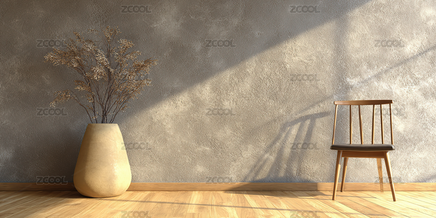简约室内一角,木椅与花瓶