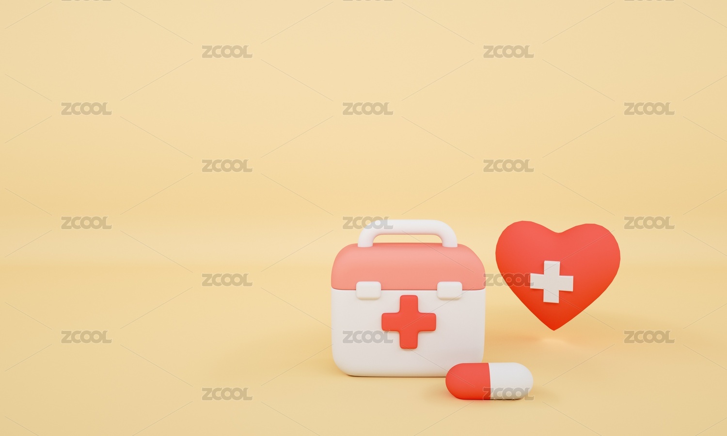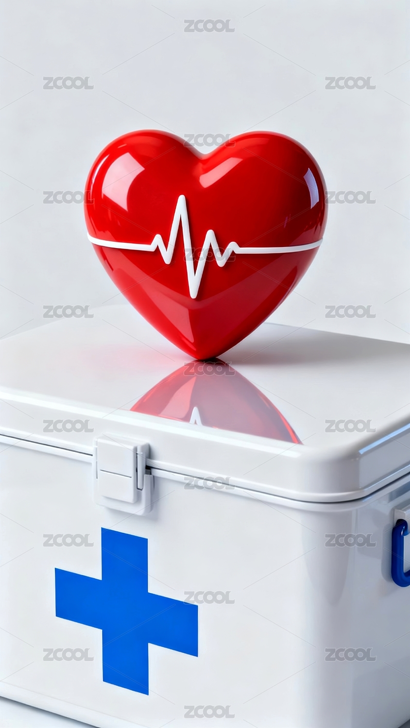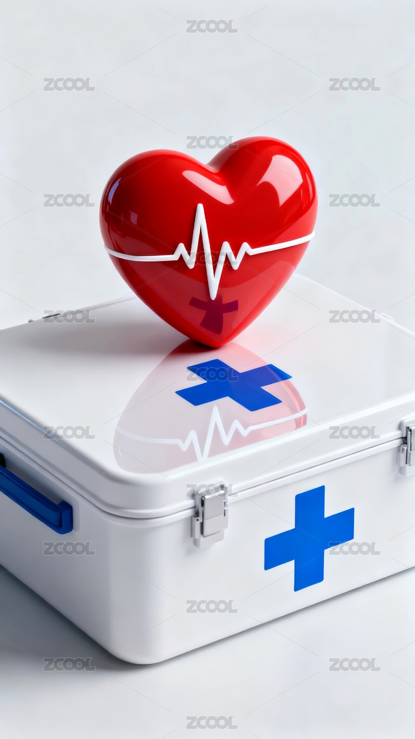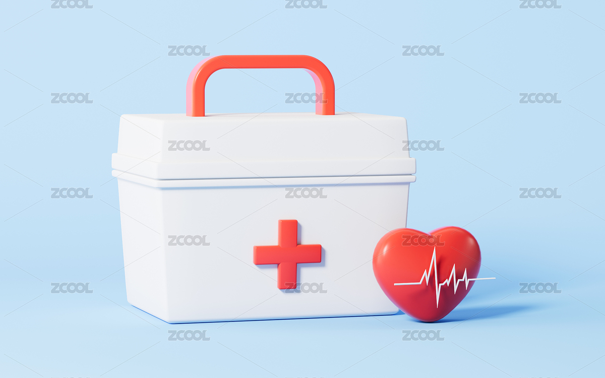 卡通风格的药箱与心脏3D渲染