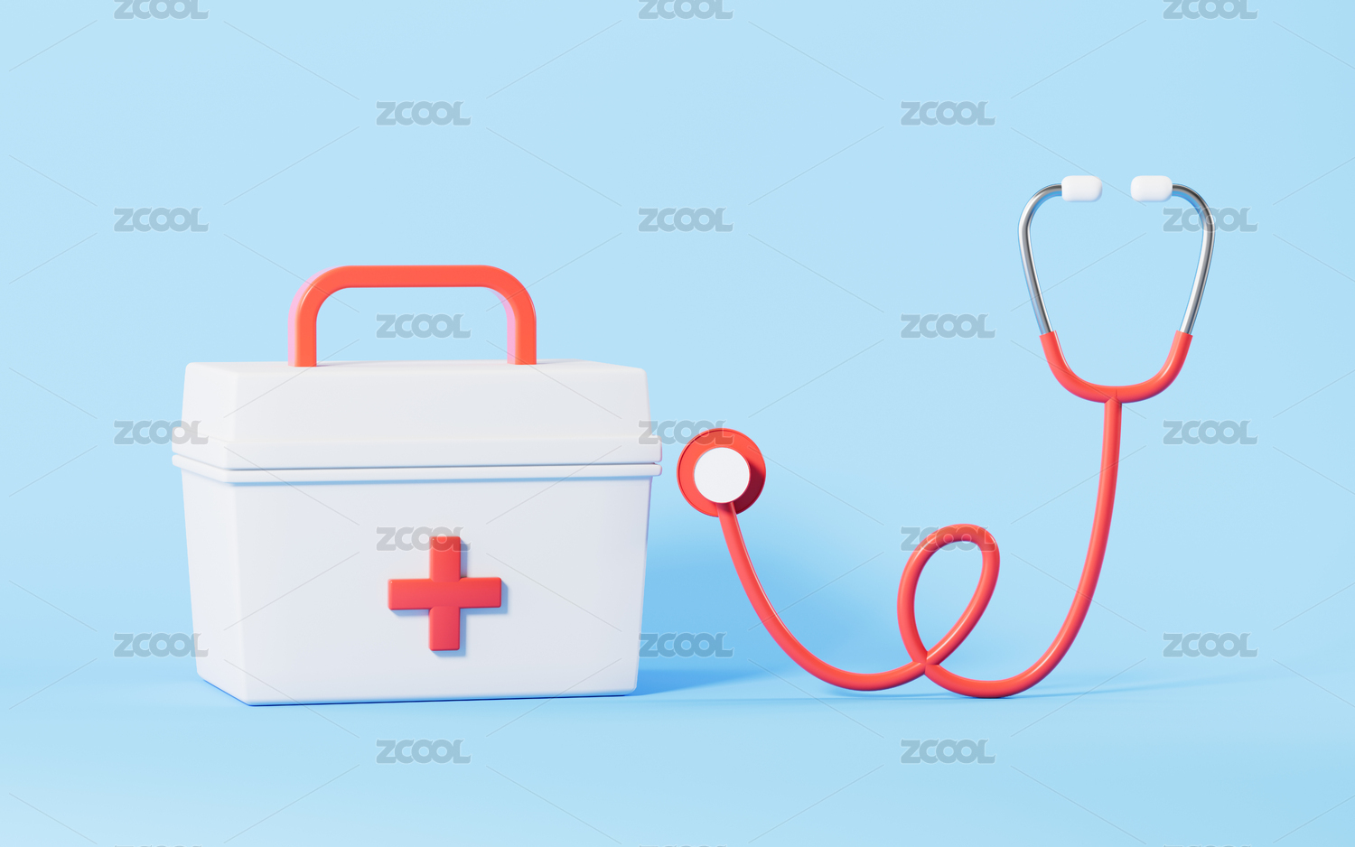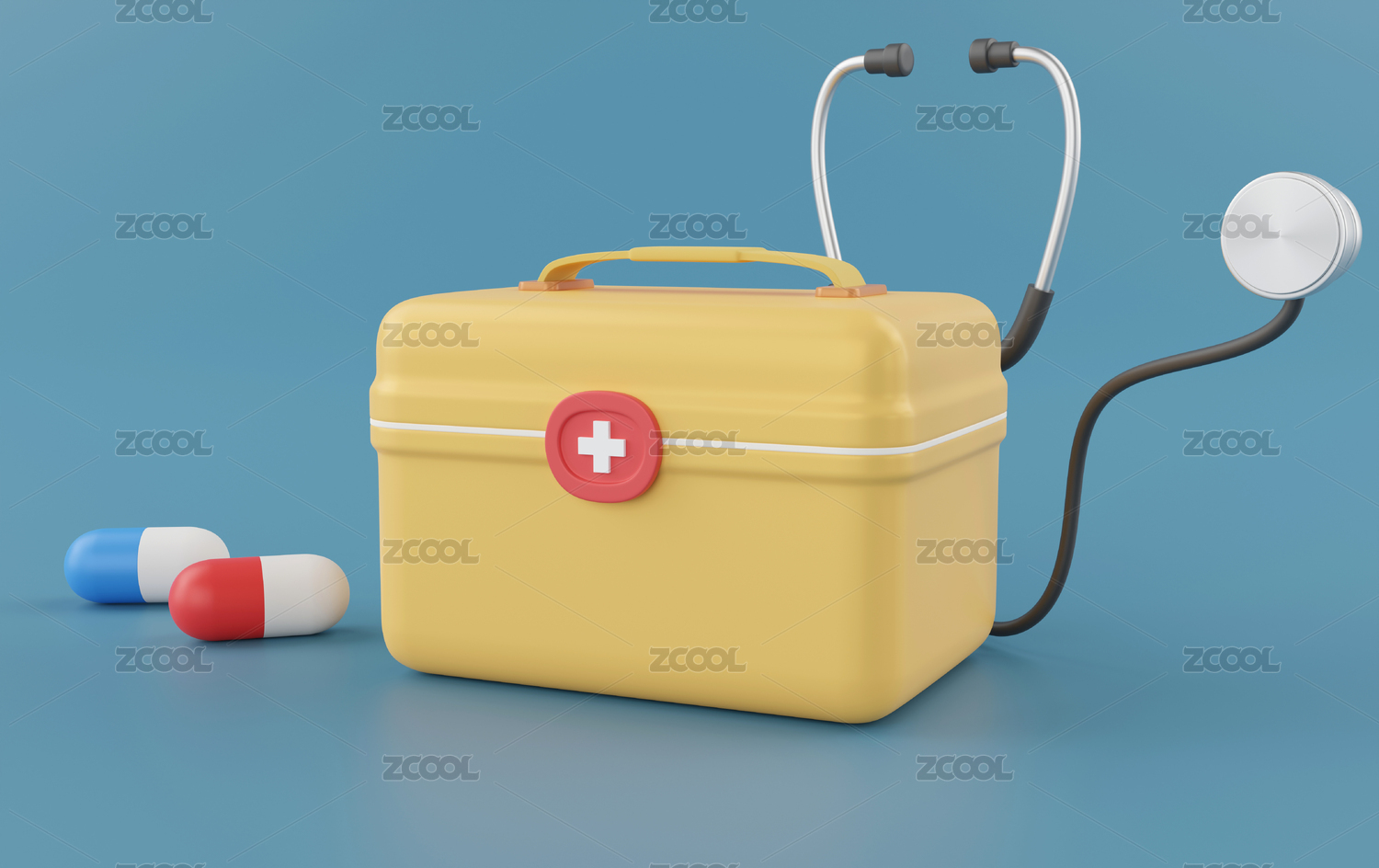 卡通听诊器与药箱3D渲染