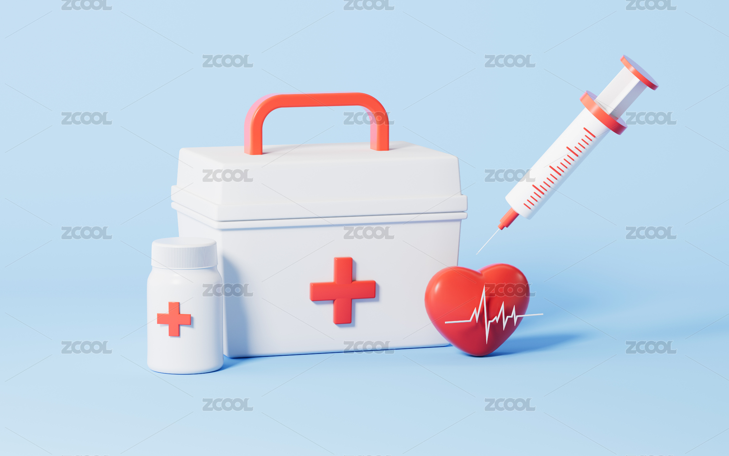 药箱与注射器3D渲染