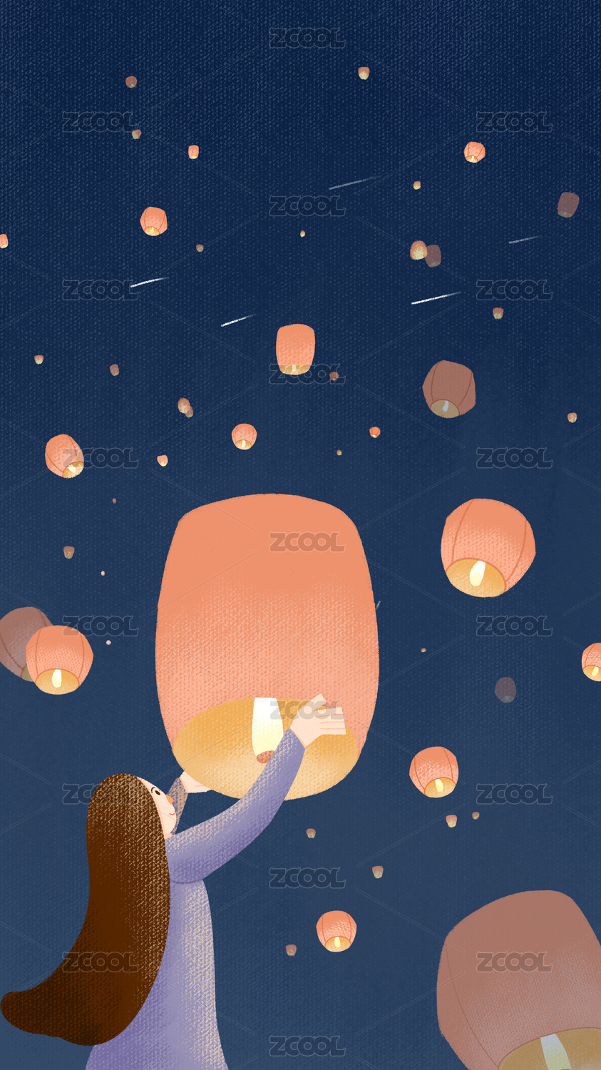 插画,人物,传统,活动,节日,元宵,孔明灯