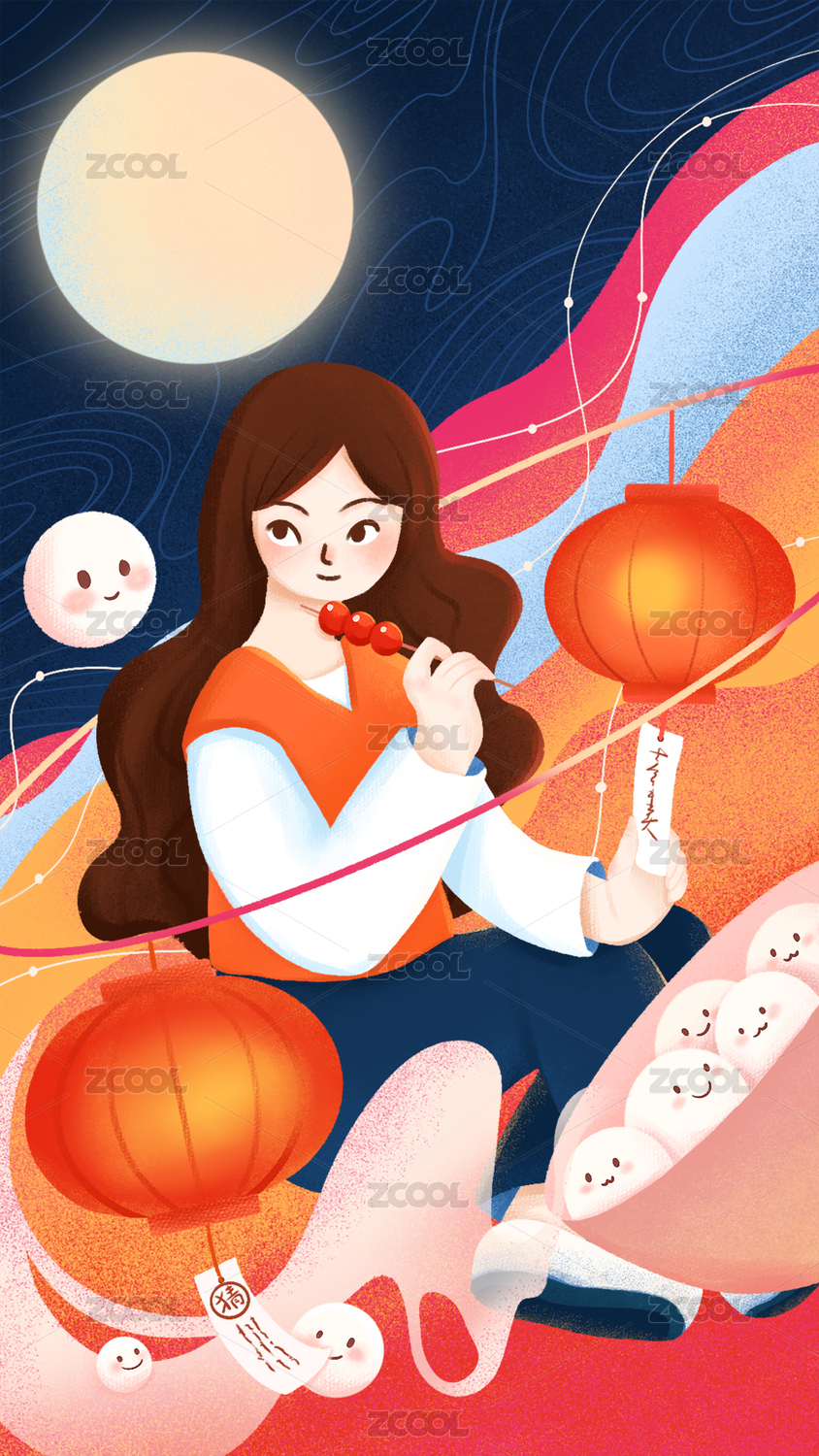 中国传统节日元宵节喜庆扁平肌理运营插画