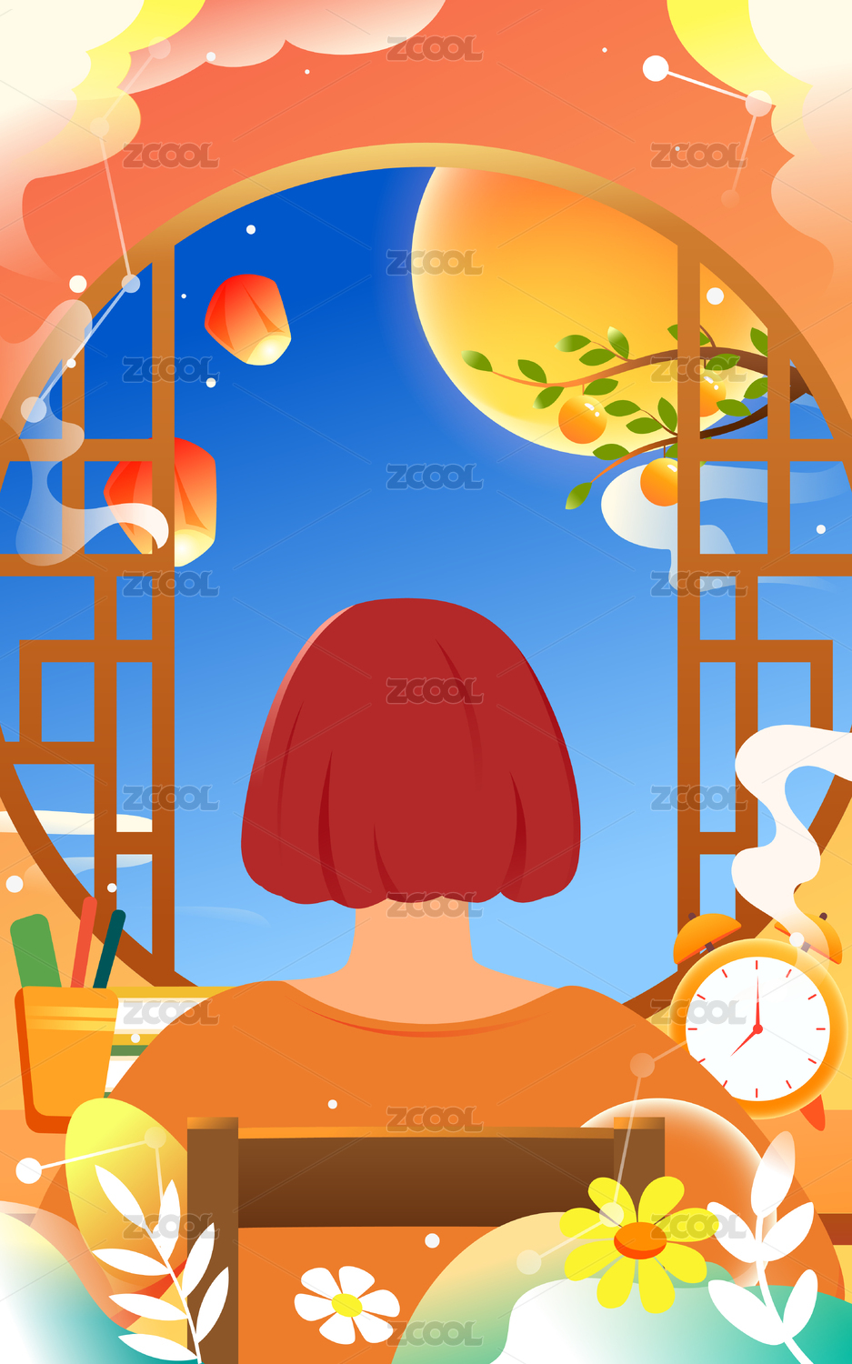 庆祝中秋节教师节双节快乐感恩老师国潮插画