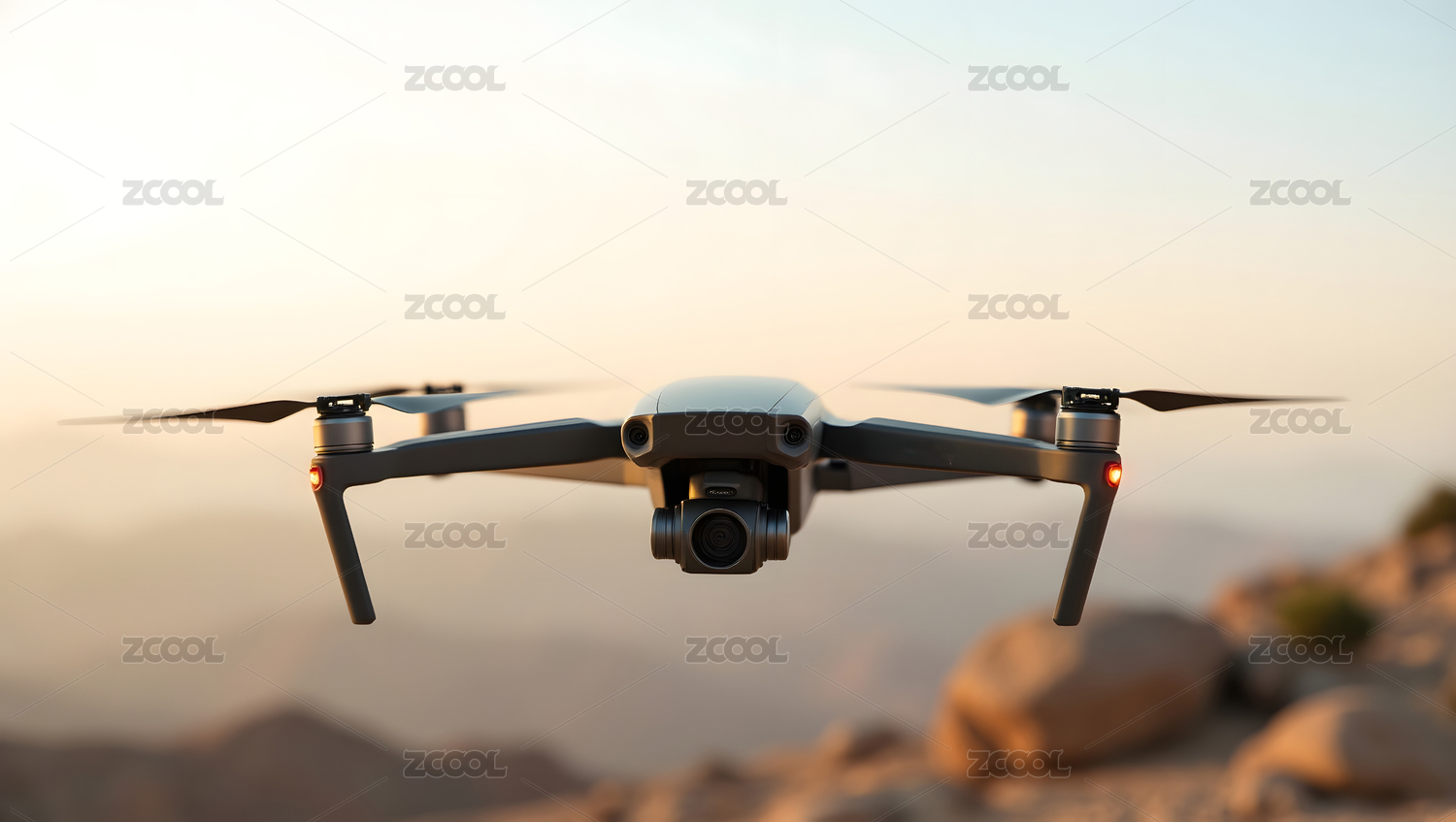 无人机悬停在山地背景中