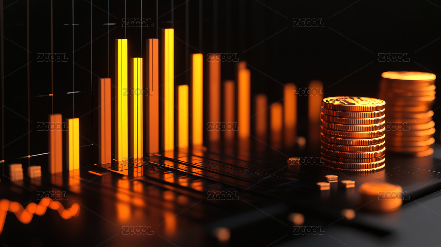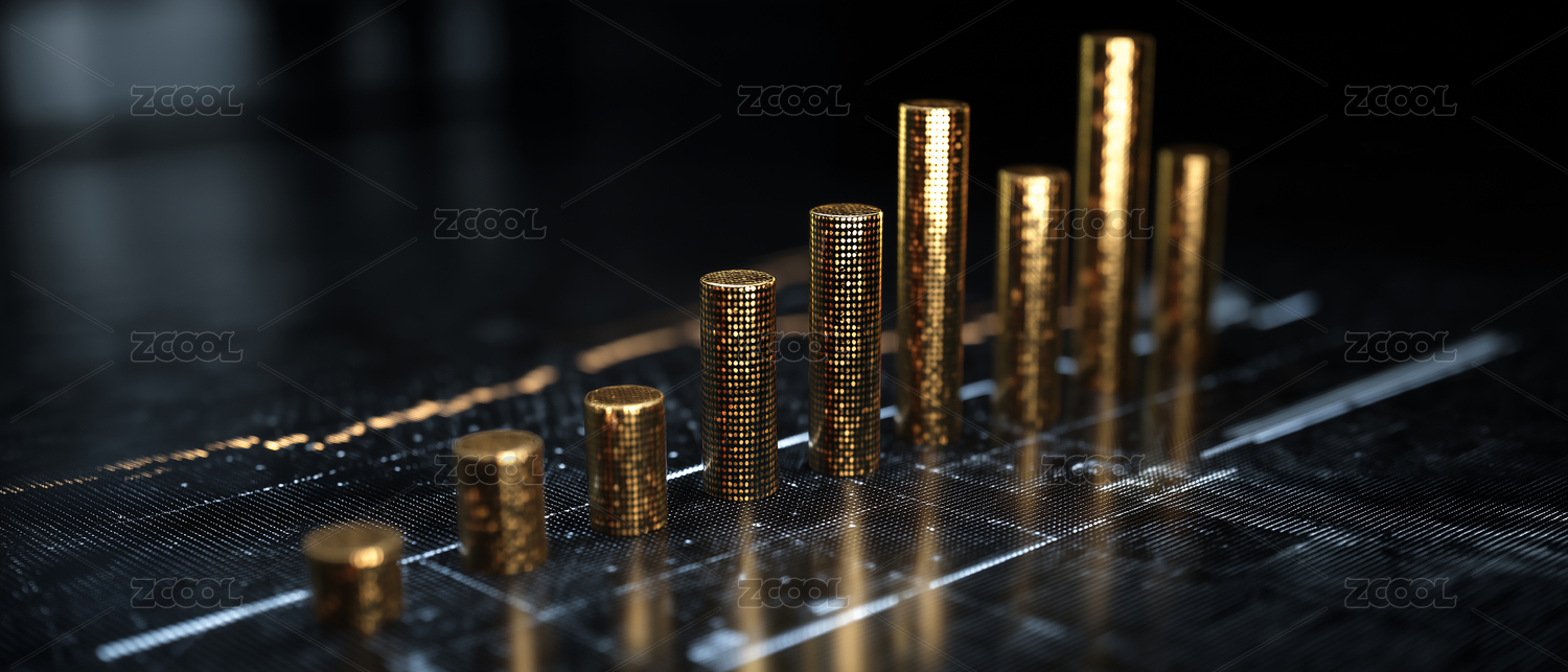 金币之上的柱状图呈现增长趋势