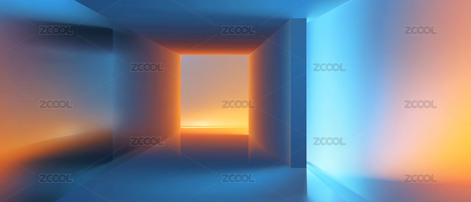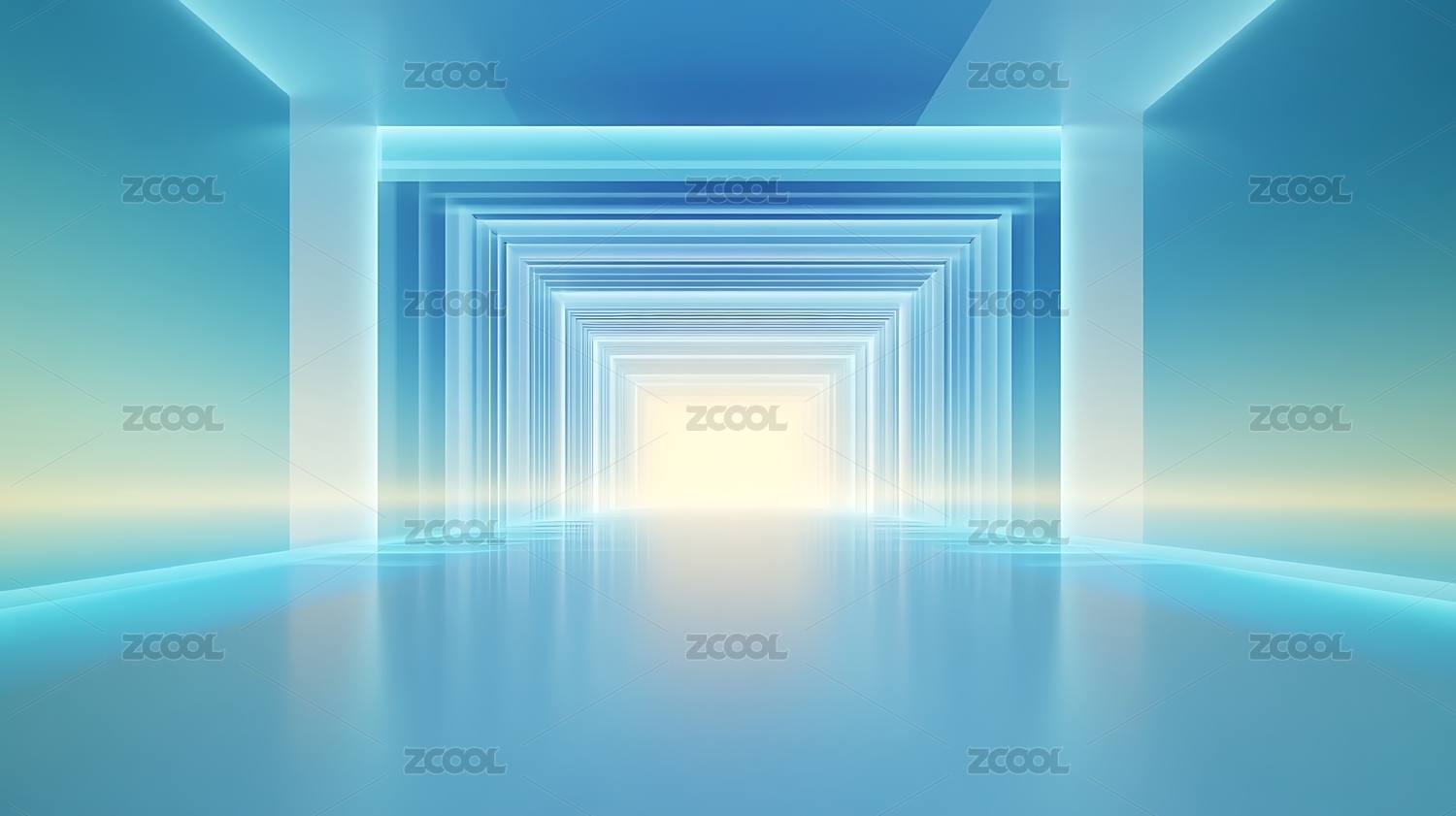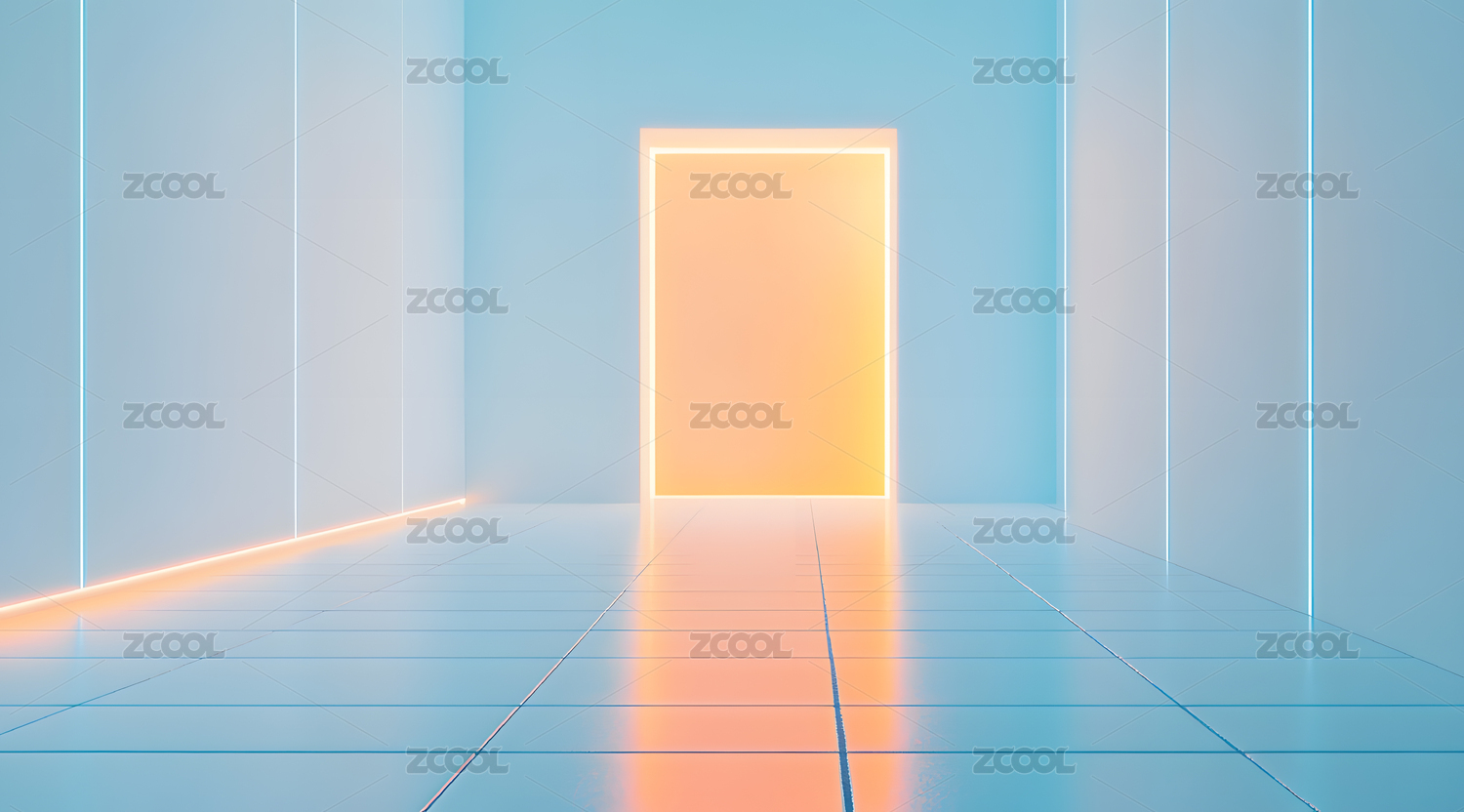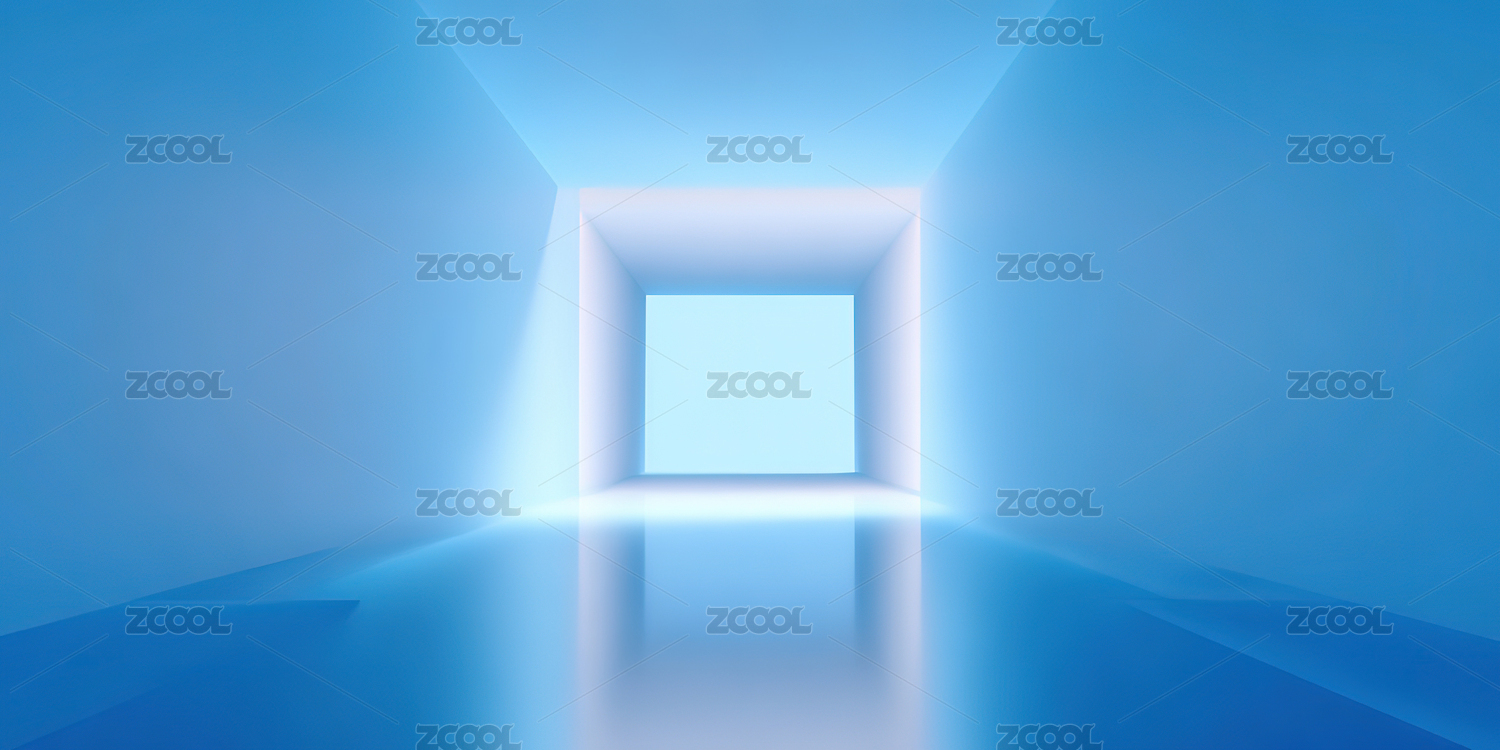 蓝色光廊尽头的方形光门