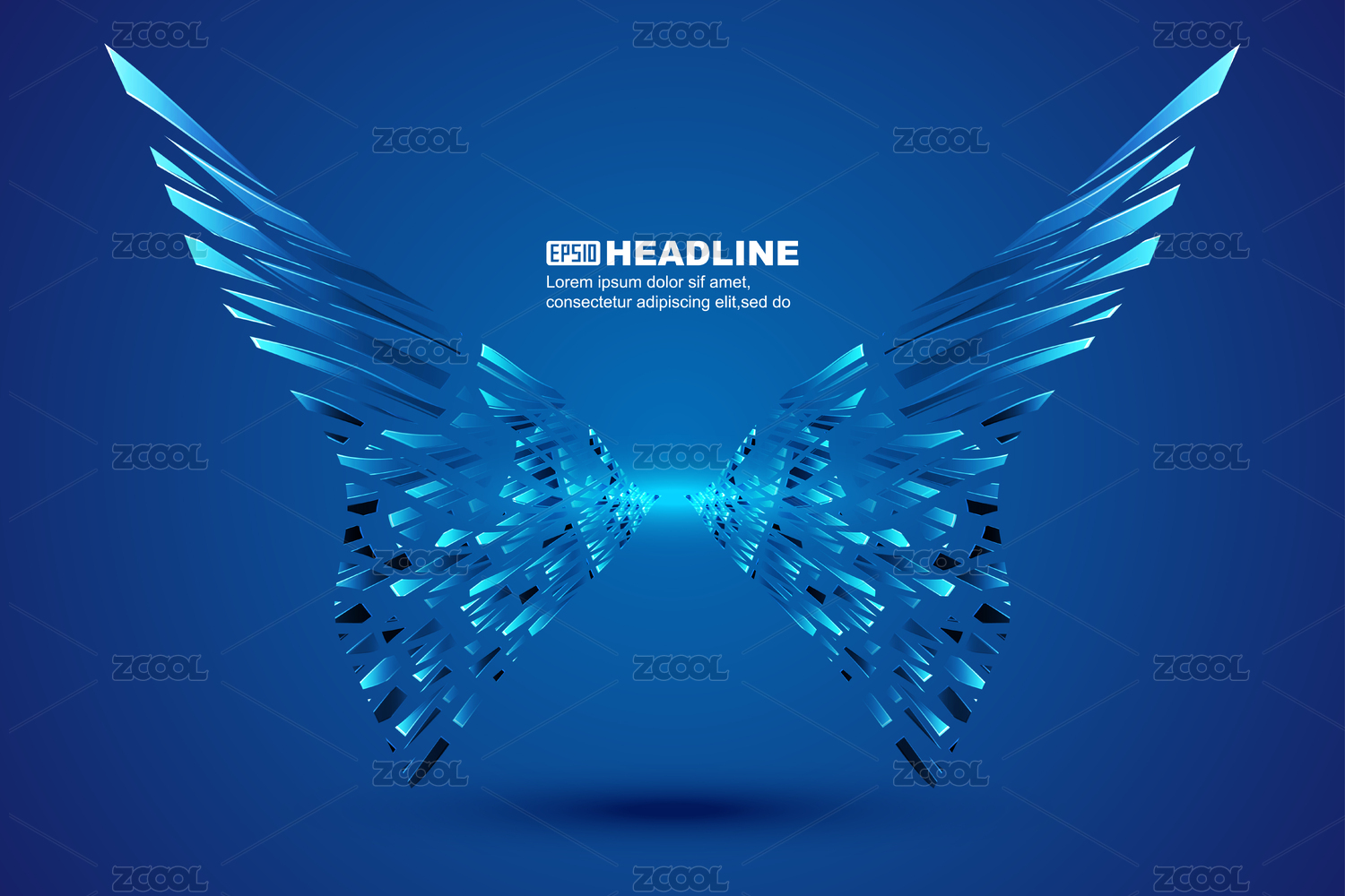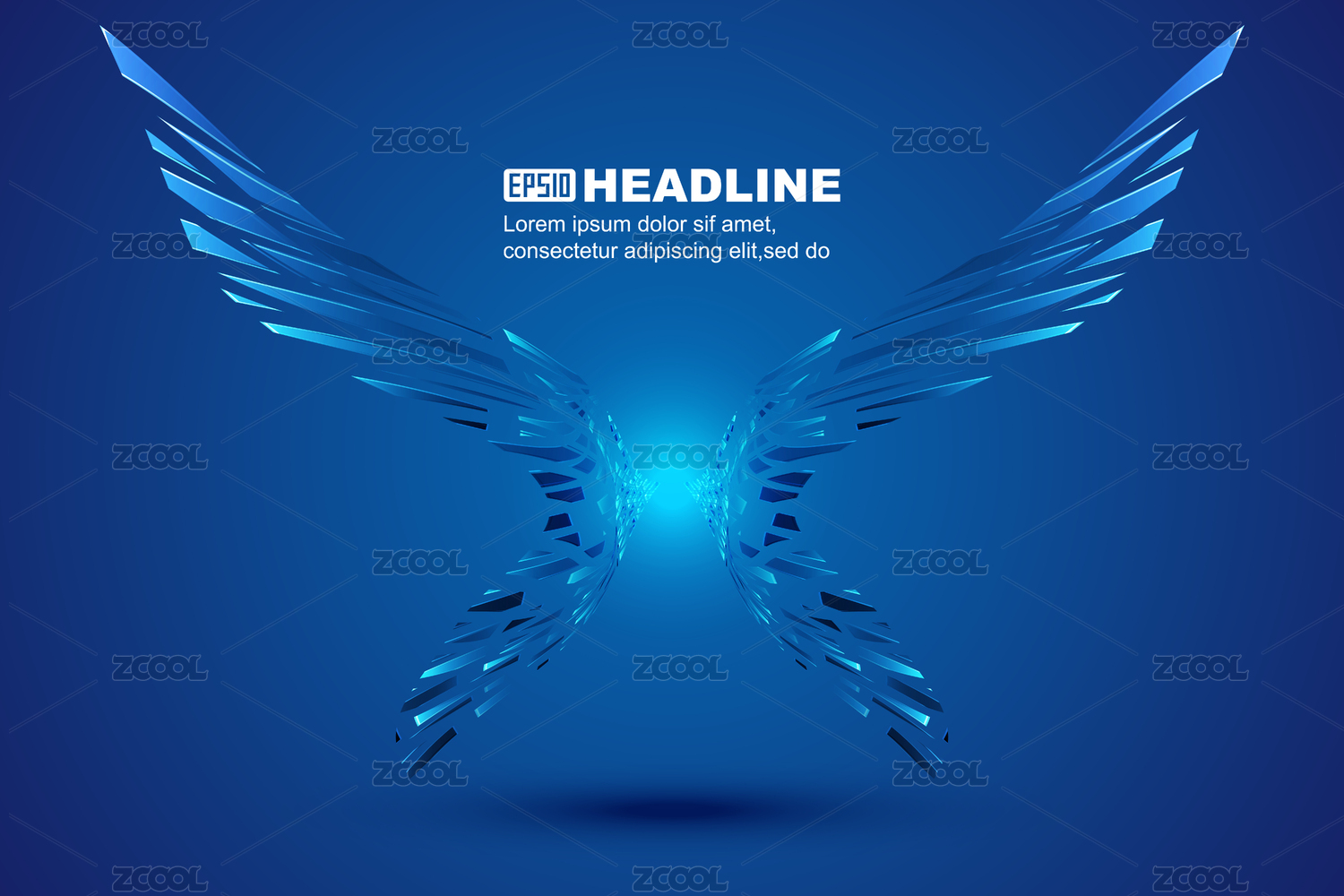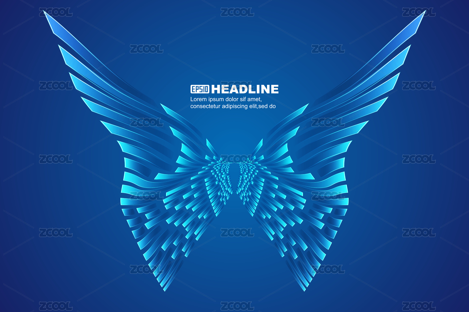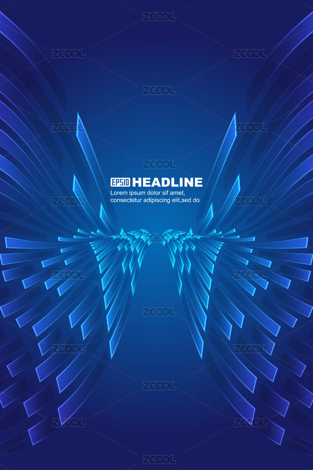 蓝色线条飞翔翅膀具有科技感矢量海报背景