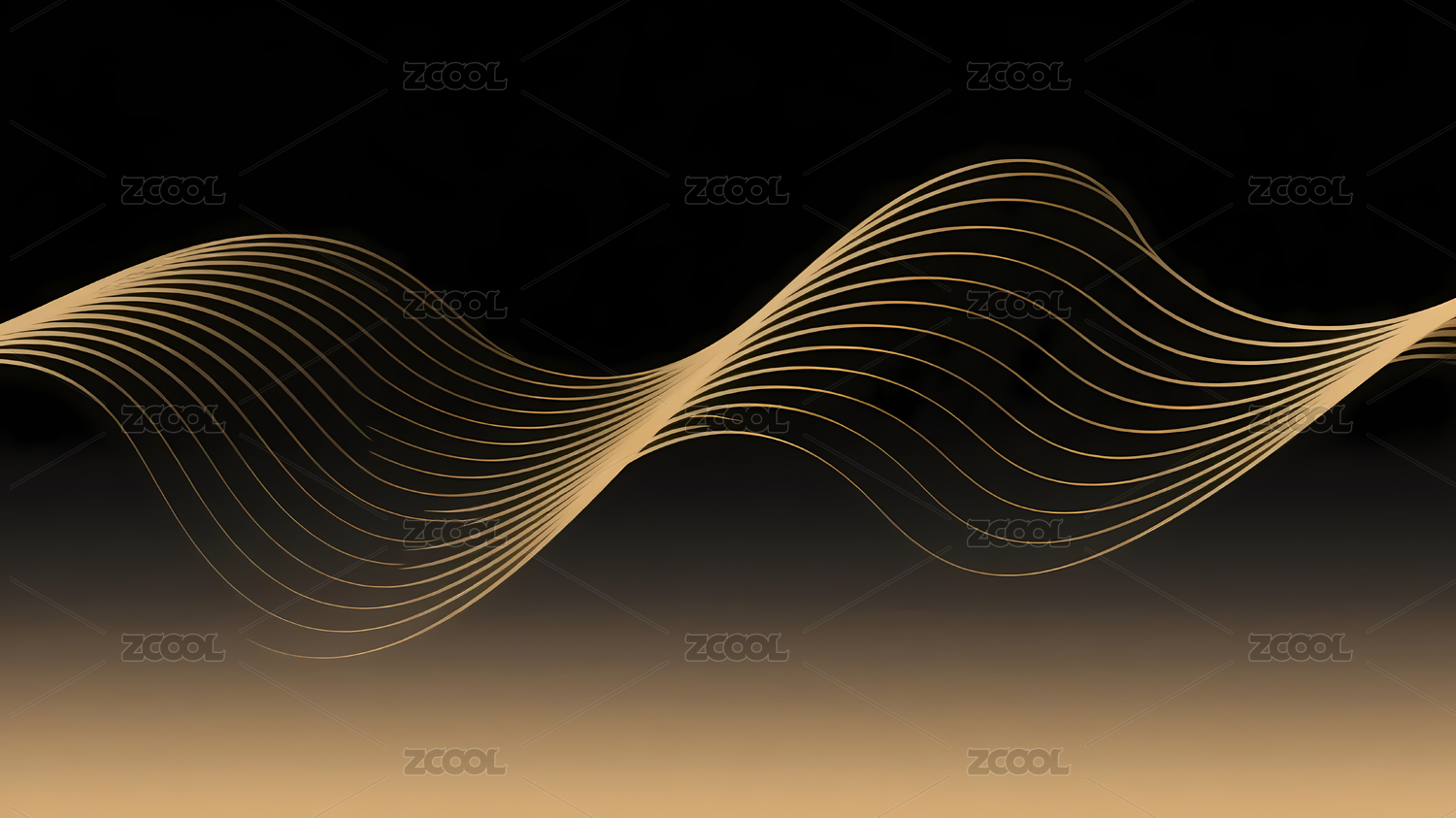 3D渲金色波浪线高端奢华质感线条纹理背景
