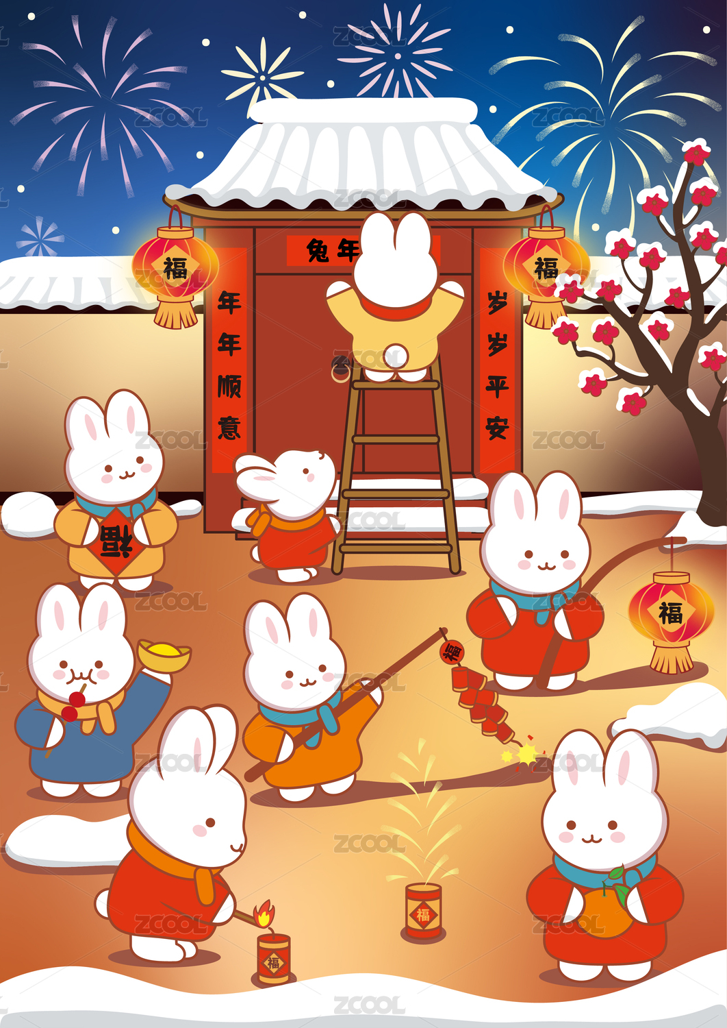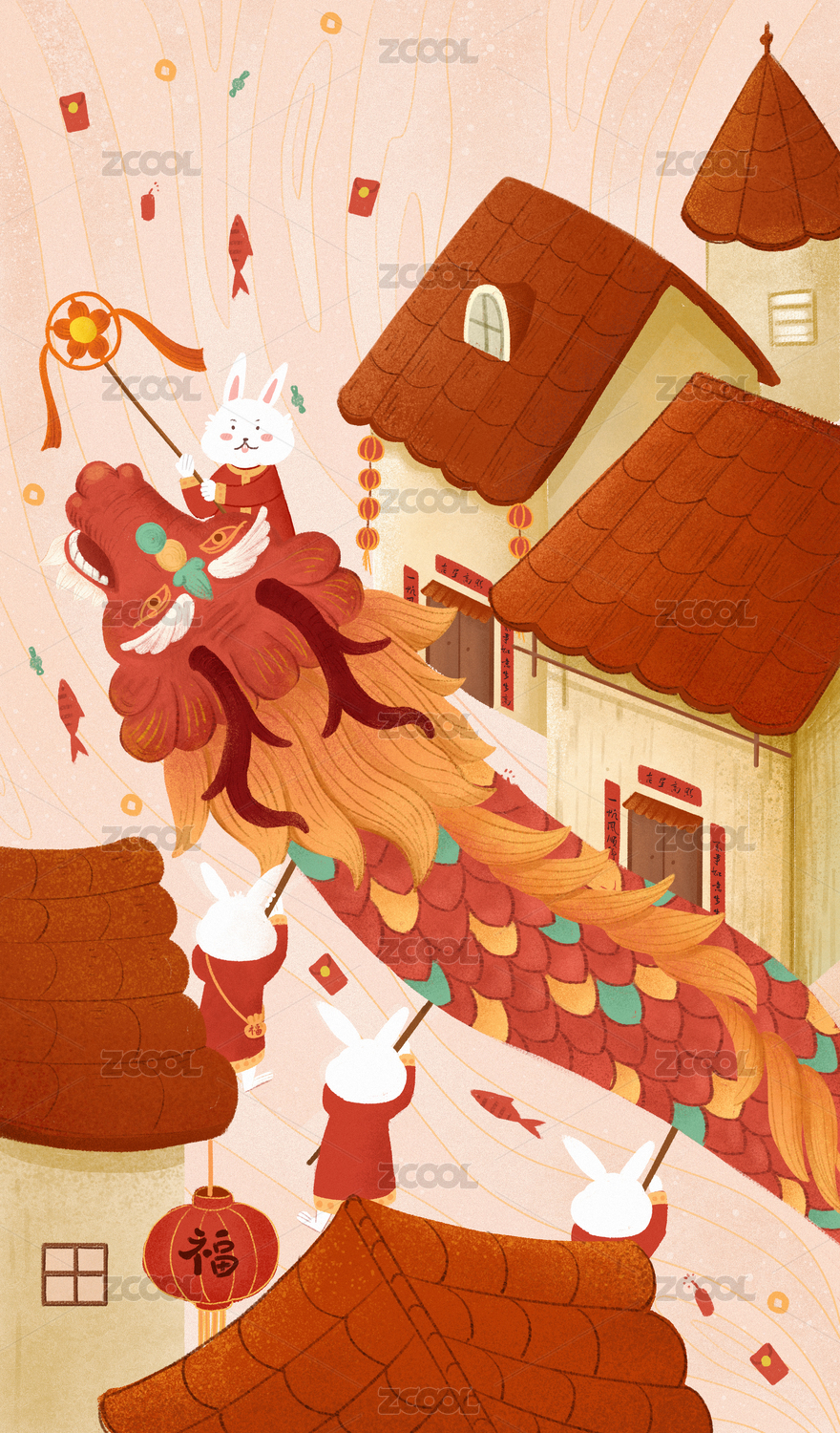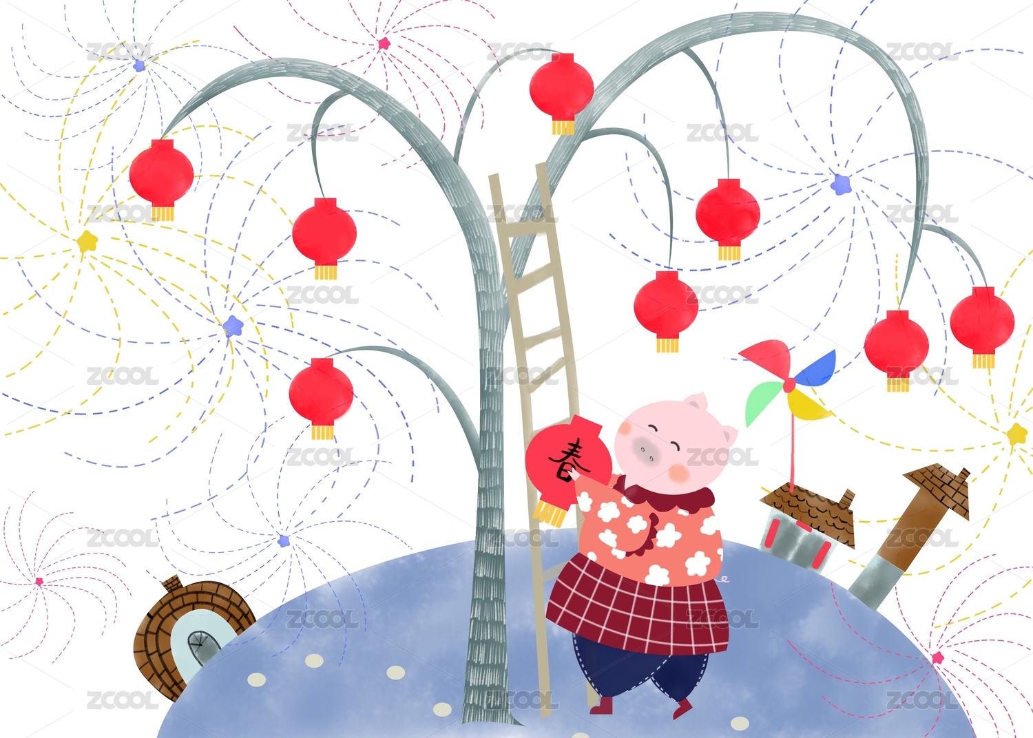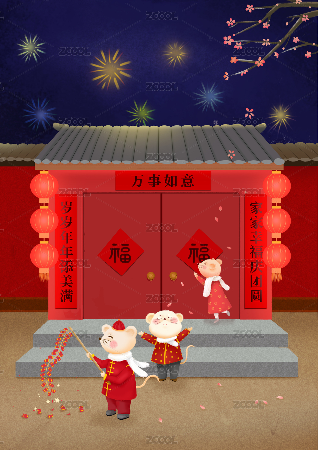 鼠年,创意,插画,手绘,节日,喜庆,灯笼,鞭炮,老鼠,背景
