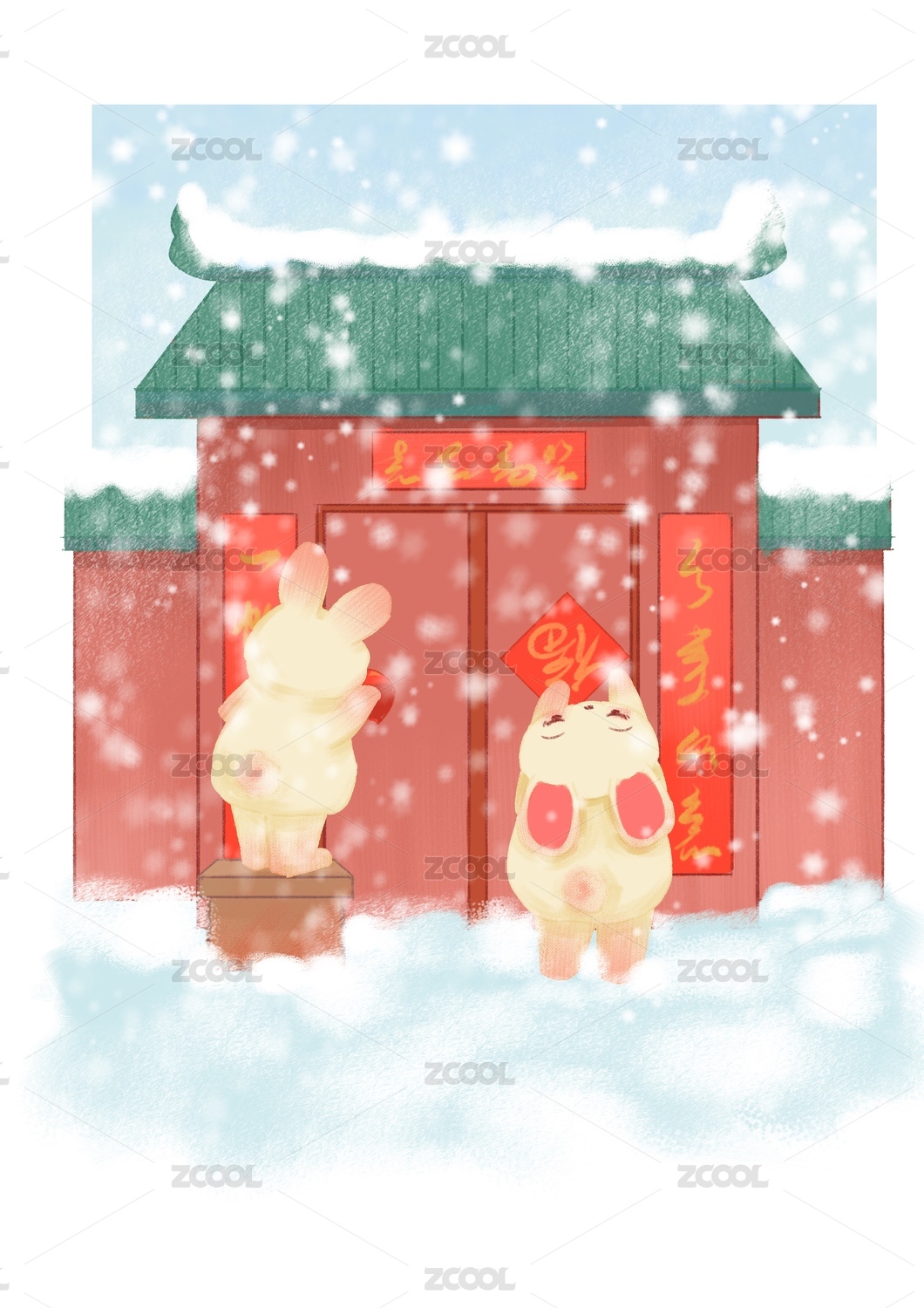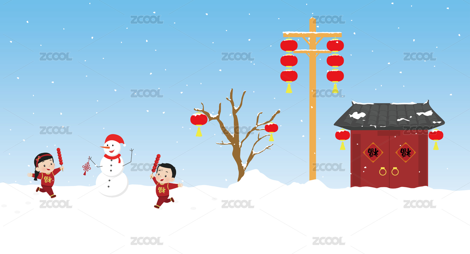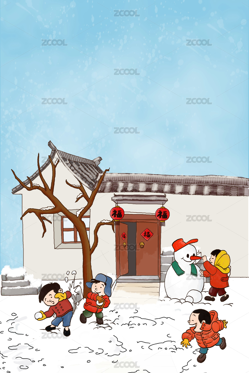 春节孩子们写福字放鞭炮堆雪人贺新年