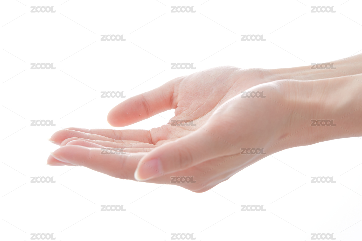 白色背景前,洗手或者鼓掌的女性手臂手势