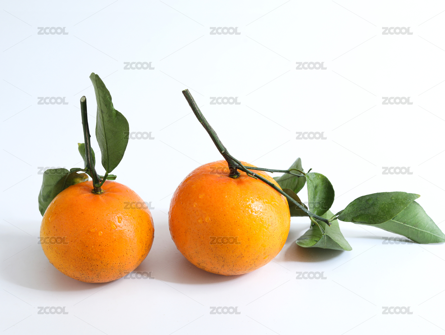 白色背景上摆放着的新鲜的涌泉蜜桔