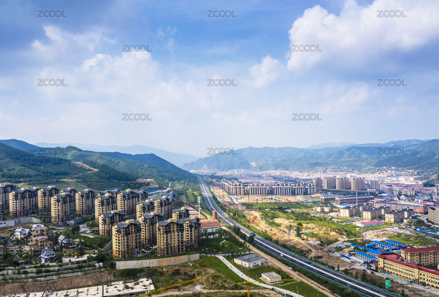 河北张家口市下花园区鸡鸣山脚下的城镇全景