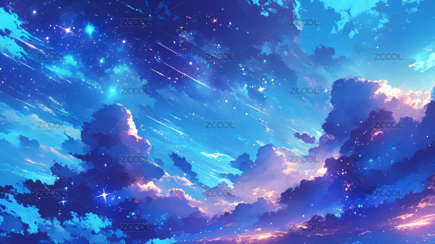 手绘唯美的抽象艺术感夜晚天空风景插画