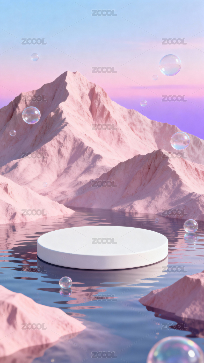 粉色山水展示台场景