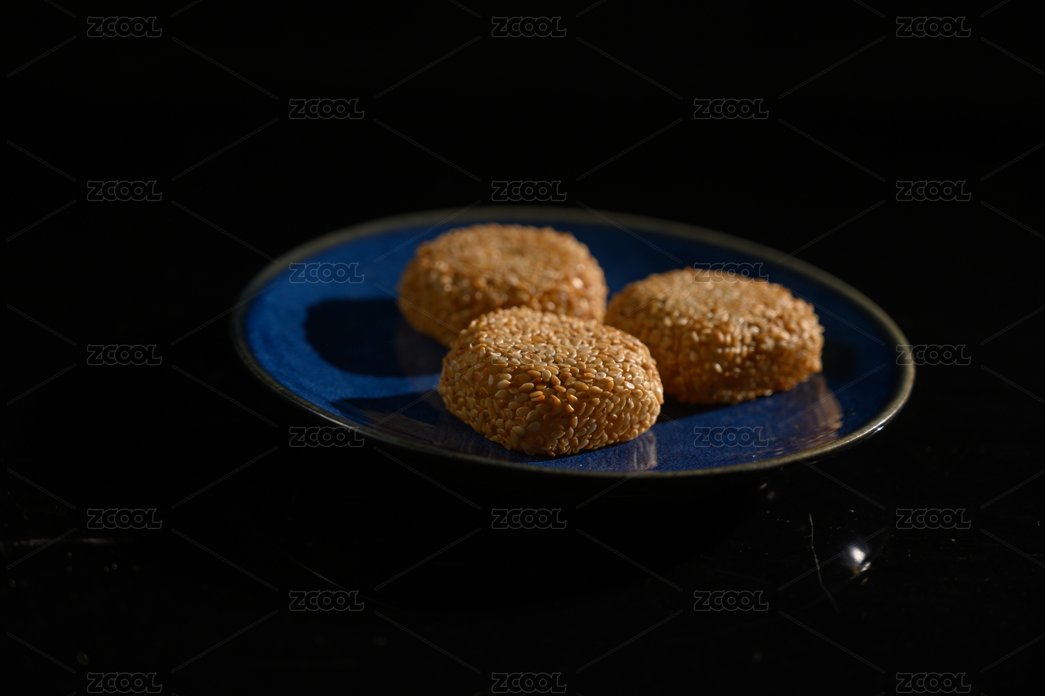 桌面上的盘子里的美味可口的芝麻麻薯
