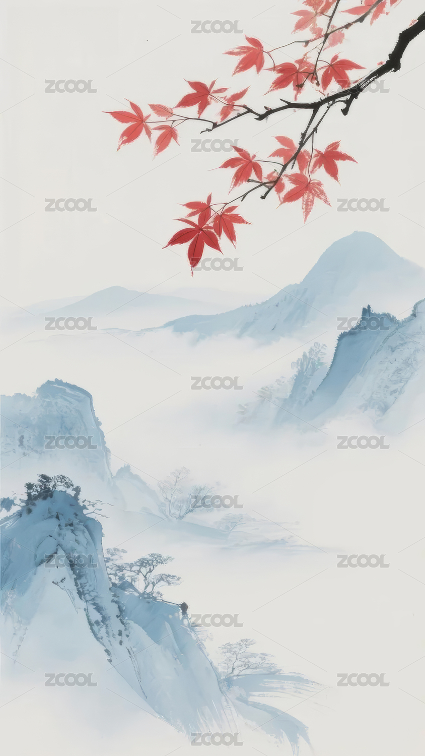 山行,红叶,蜀道难,小房子,水彩山,高山,手绘水彩枫叶,国画枫叶
