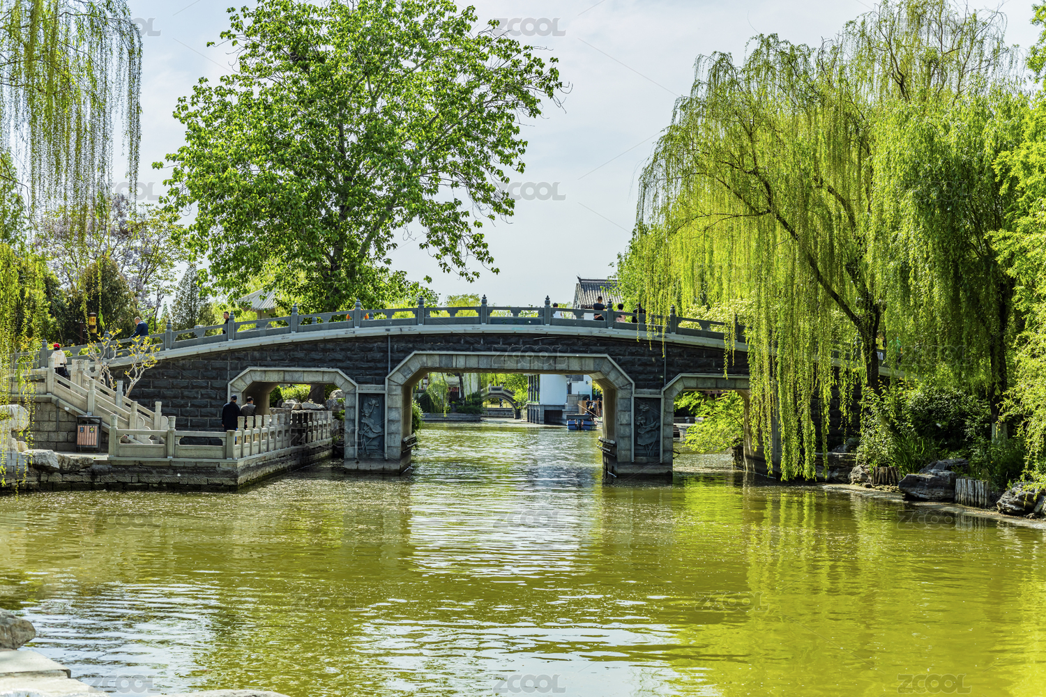 中式,园林,拱桥,柳树,幽静,简朴,庭院,小径,悠闲,乡间