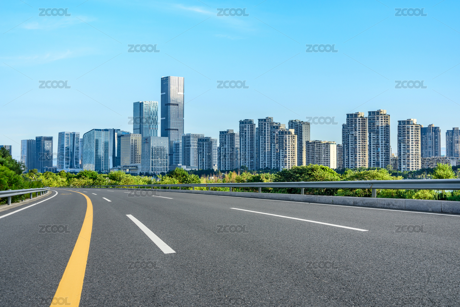 中国广东省深圳市宝安区宝安中心办公楼群和沥青马路创意合成