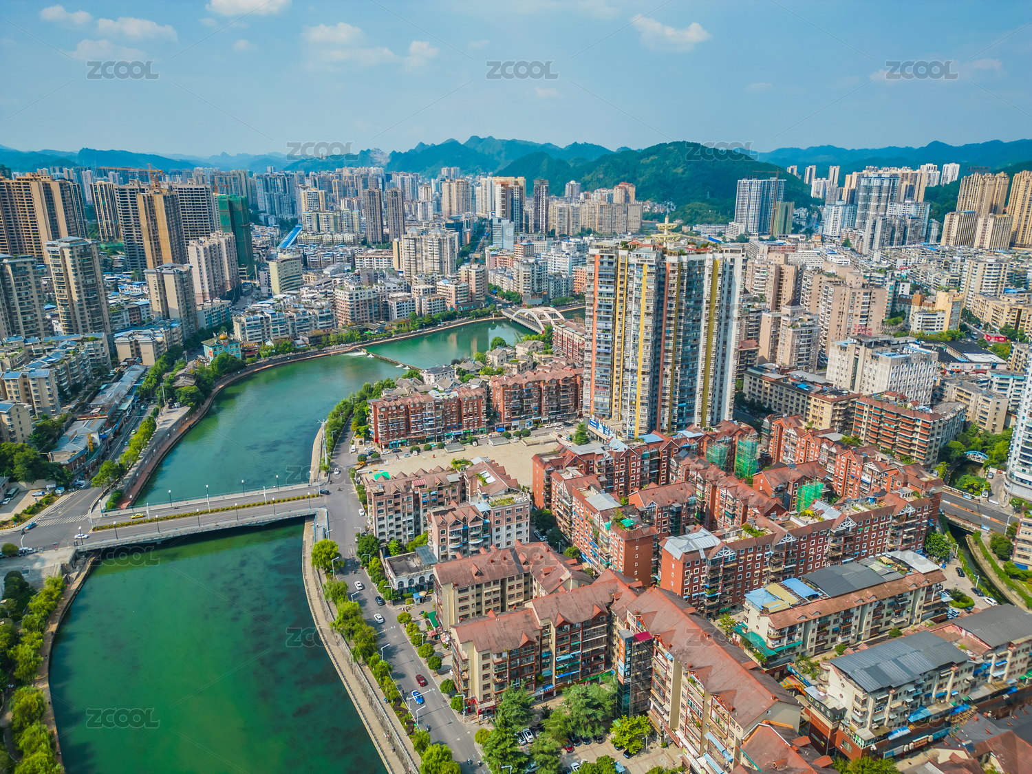 贵州都匀市剑江河周边城市建筑