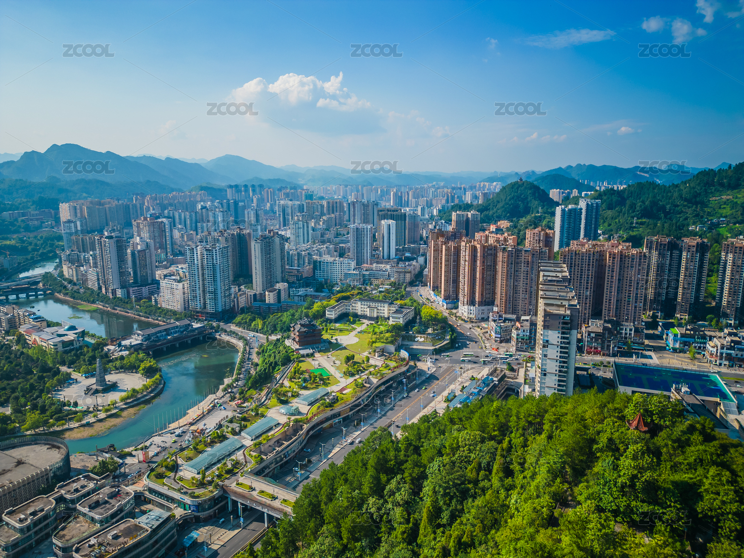 夏季,贵州,铜仁,航拍,城市,景观,房屋,道路,桥梁,锦江