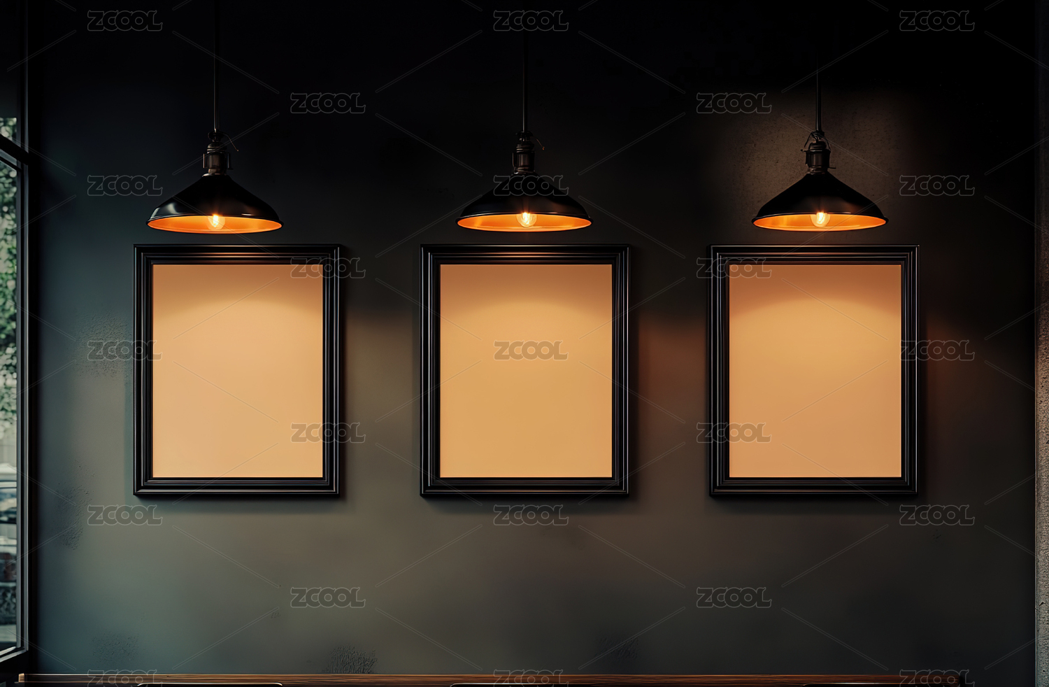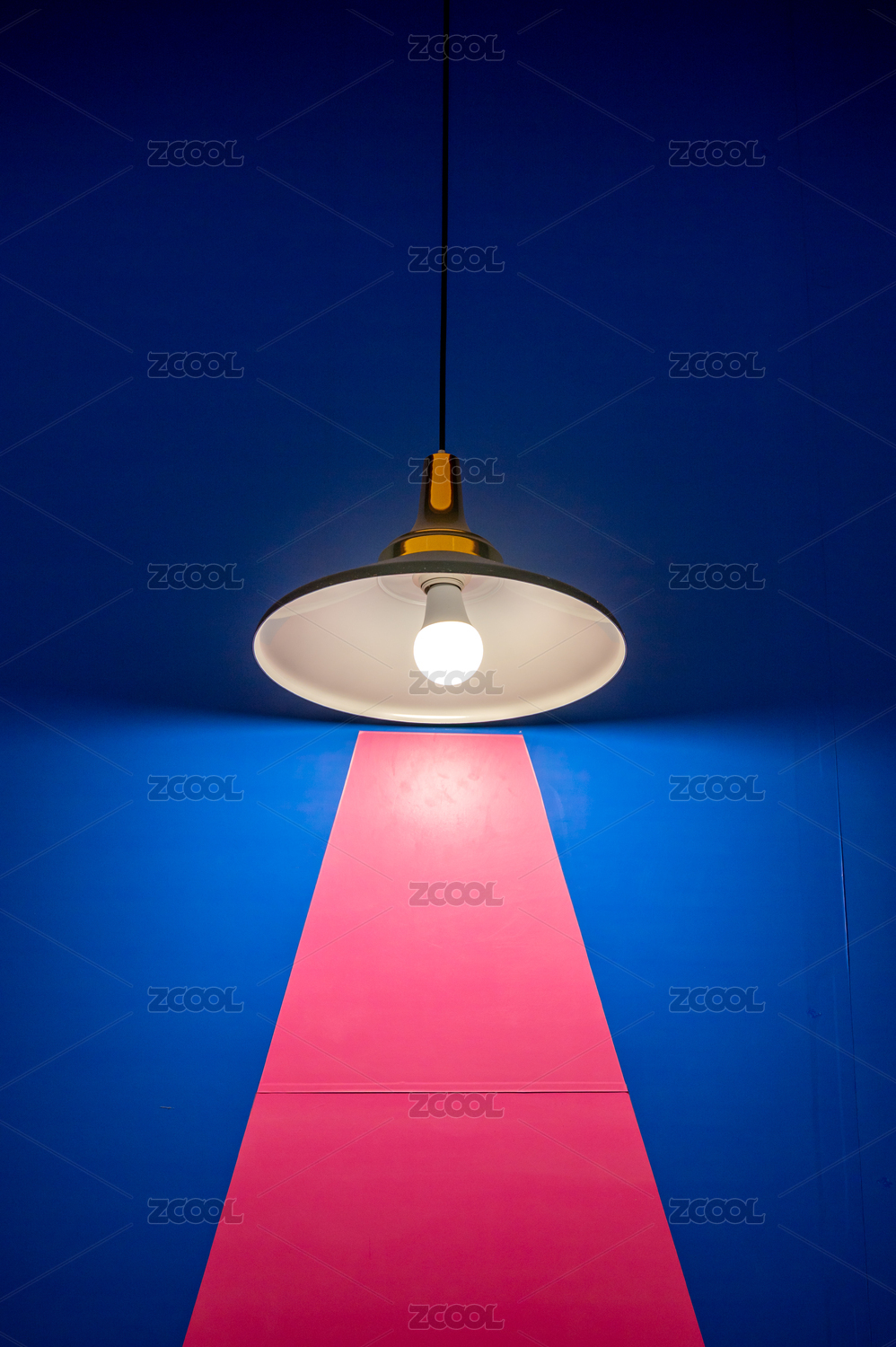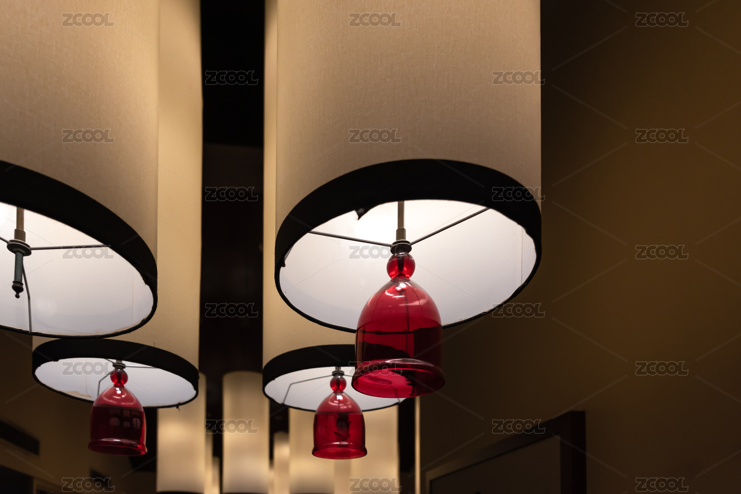 红色的墙壁前挂着几盏暖色调的吊灯。