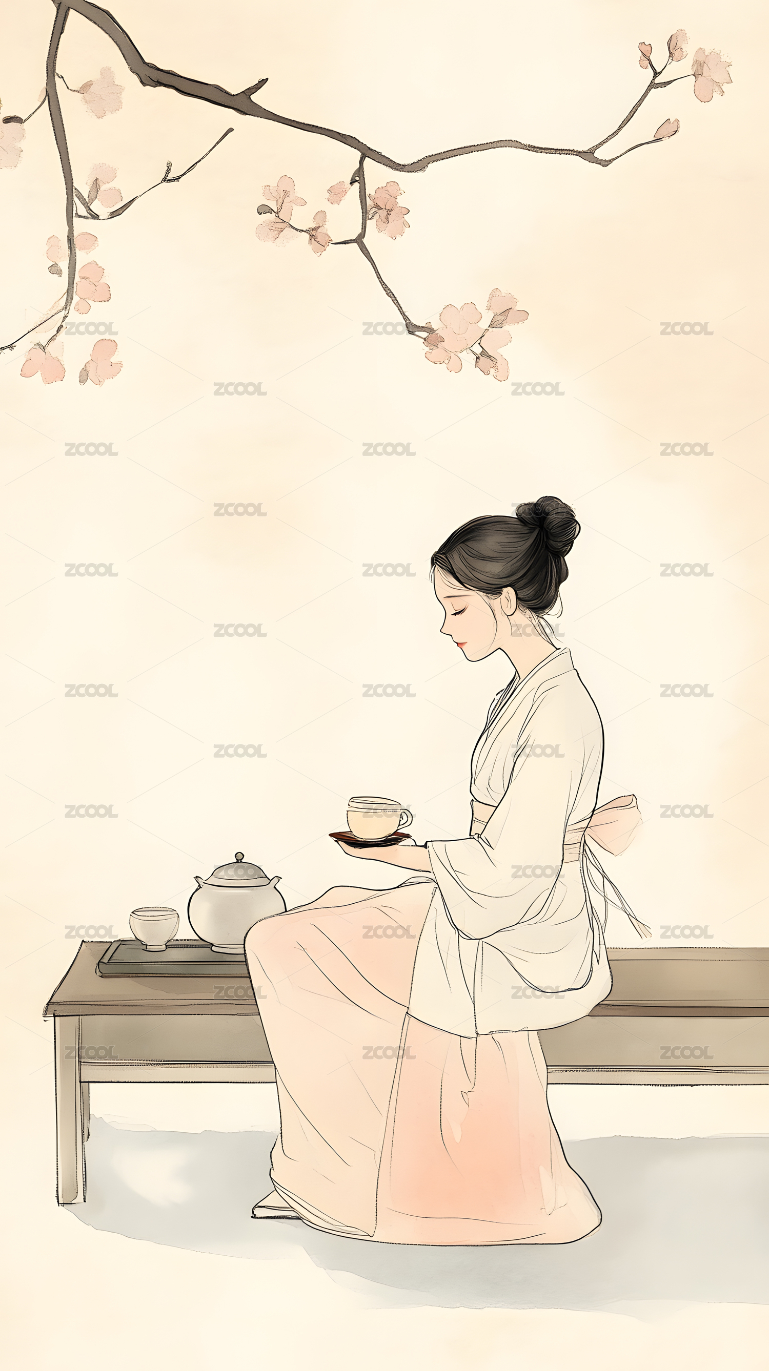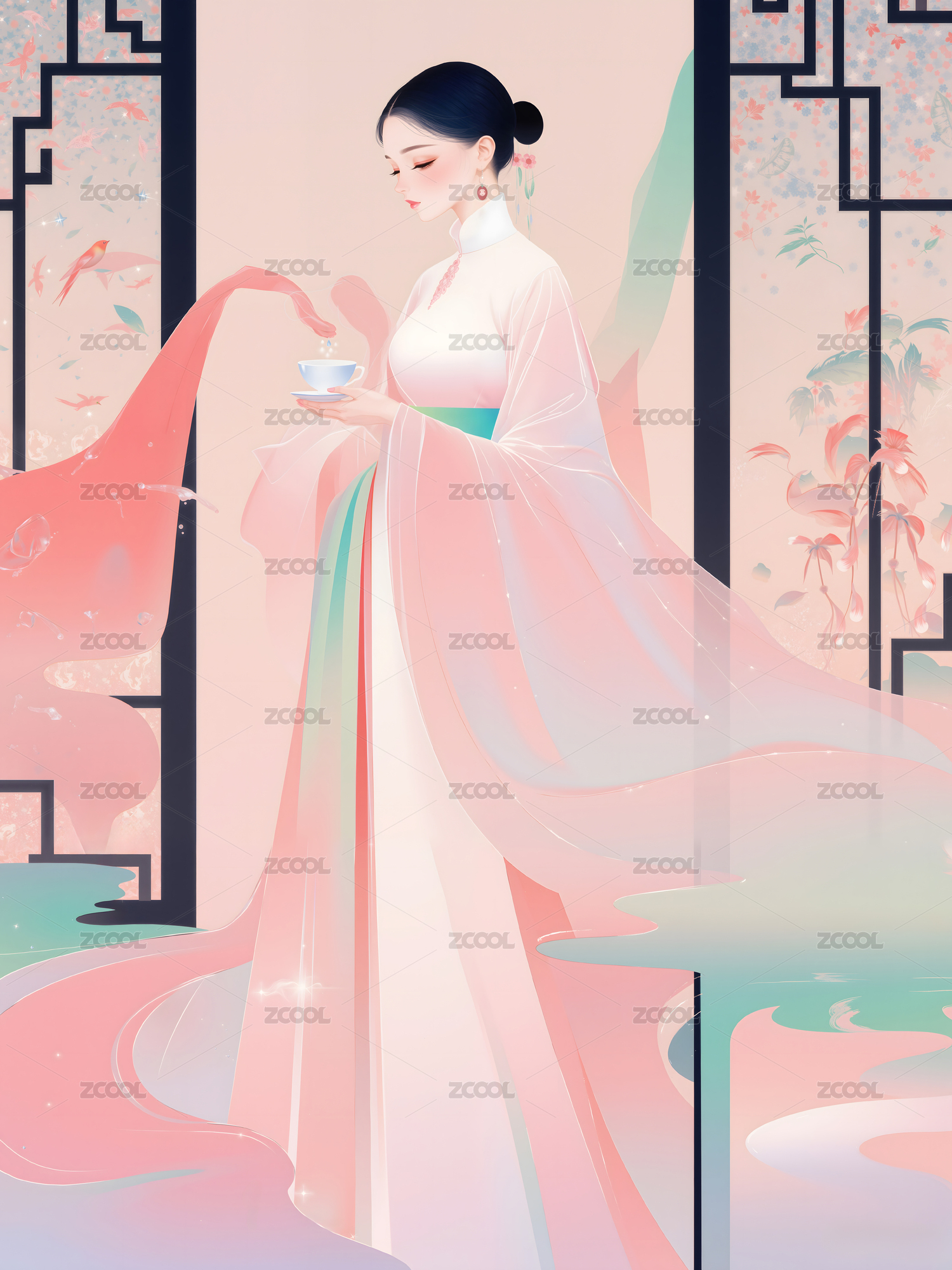 国潮风江山仙女美人中秋嫦娥品茶创意插画