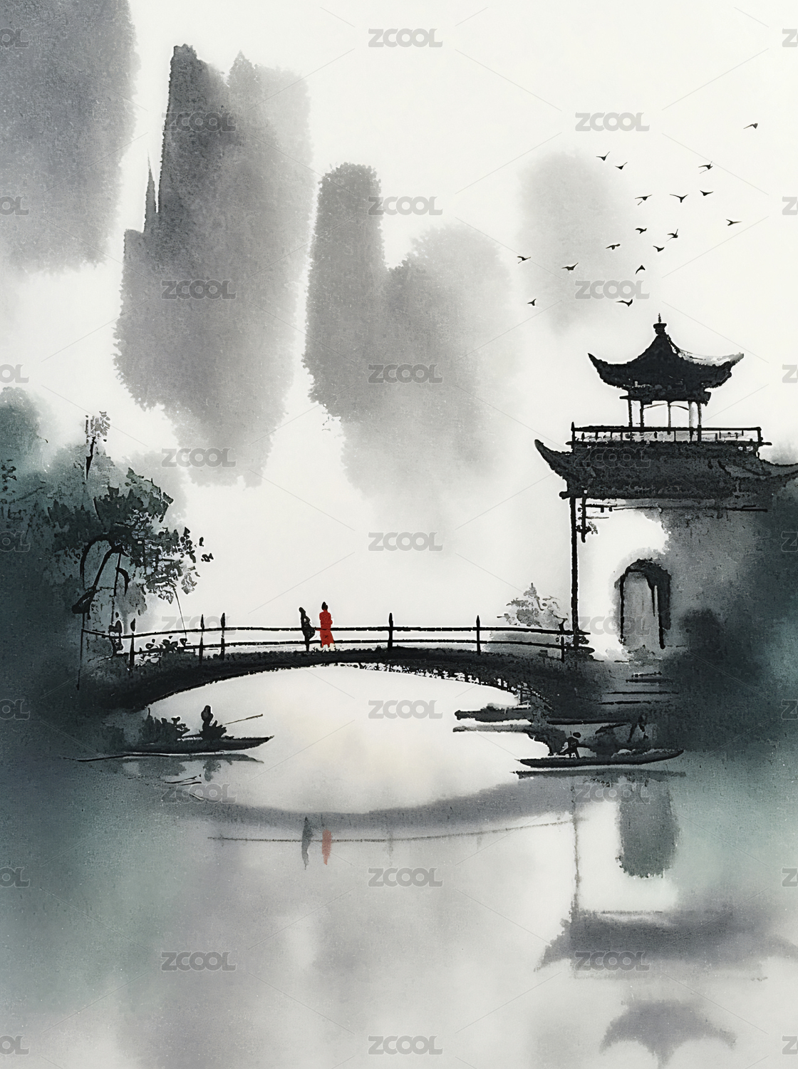 秋天,立秋,黄昏,湖,节气,山,植物,节日,古代,美人